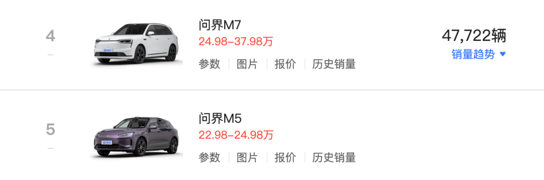 目前,问界品牌在售车型有问界M5、问界M7、问界M9、问界M8等车型,车型覆盖了中型SUV、中大型SUV、大型SUV,价格区间在20万至60万元级别。数据显示,2025年前三季度问界M8和问界M9销量分别为99529辆、93102辆,问界M7为47722辆,问界M5为28731辆。得益于几款车的销量,赛力斯在去年一季度首次实现了盈利。数据显示,2024年赛力斯一季度营业收入265.61亿元,同比增长421.76%;归母净利润2.20亿元,同比增长135.12%。作为参考,2019年至2023年,赛力斯净亏损分别为8.84亿元、23.08亿元、27.93亿元、42.96亿元、48.17亿元,5年累计亏损为150.98亿元。