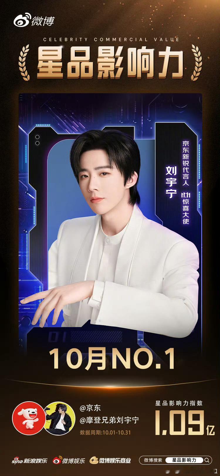 星品影响力10月总榜,刘宇宁拿下星品影响力第一名,传播力,品牌力,双top1