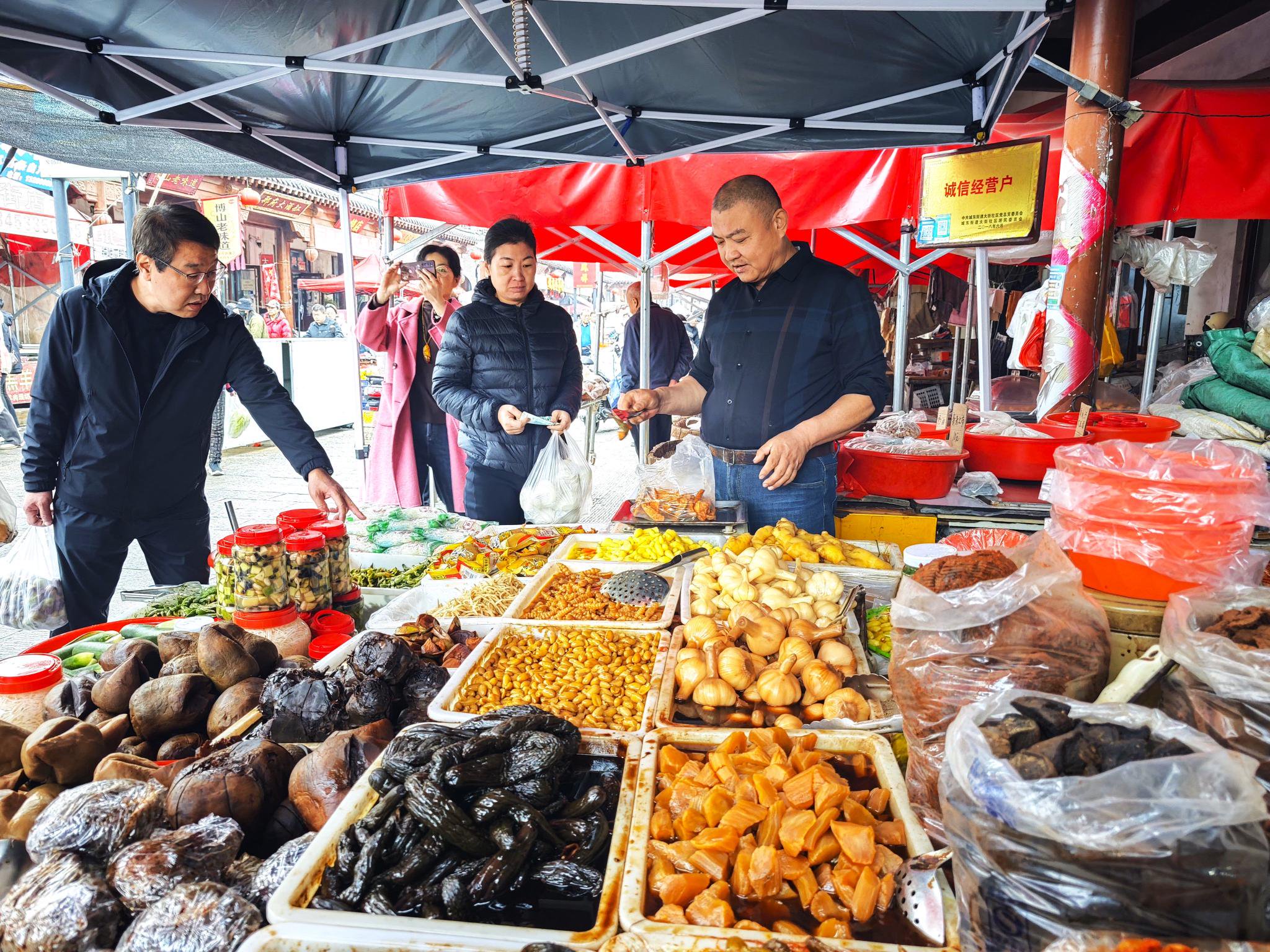 “‘大街’的外地游客确实比之前多了,有的专门跑来买我们的酸咸菜。”店铺前,张杰一边招呼客人,一边跟记者介绍。正是早晨八点多钟的光景,又是周末,来“大街”买菜买肉的群众很快挤满了街道。张杰说,逢“三”逢“八”赶集的时候,“大街”根本走不动。许多年轻人也跑过来,就是为了体验烟火气。