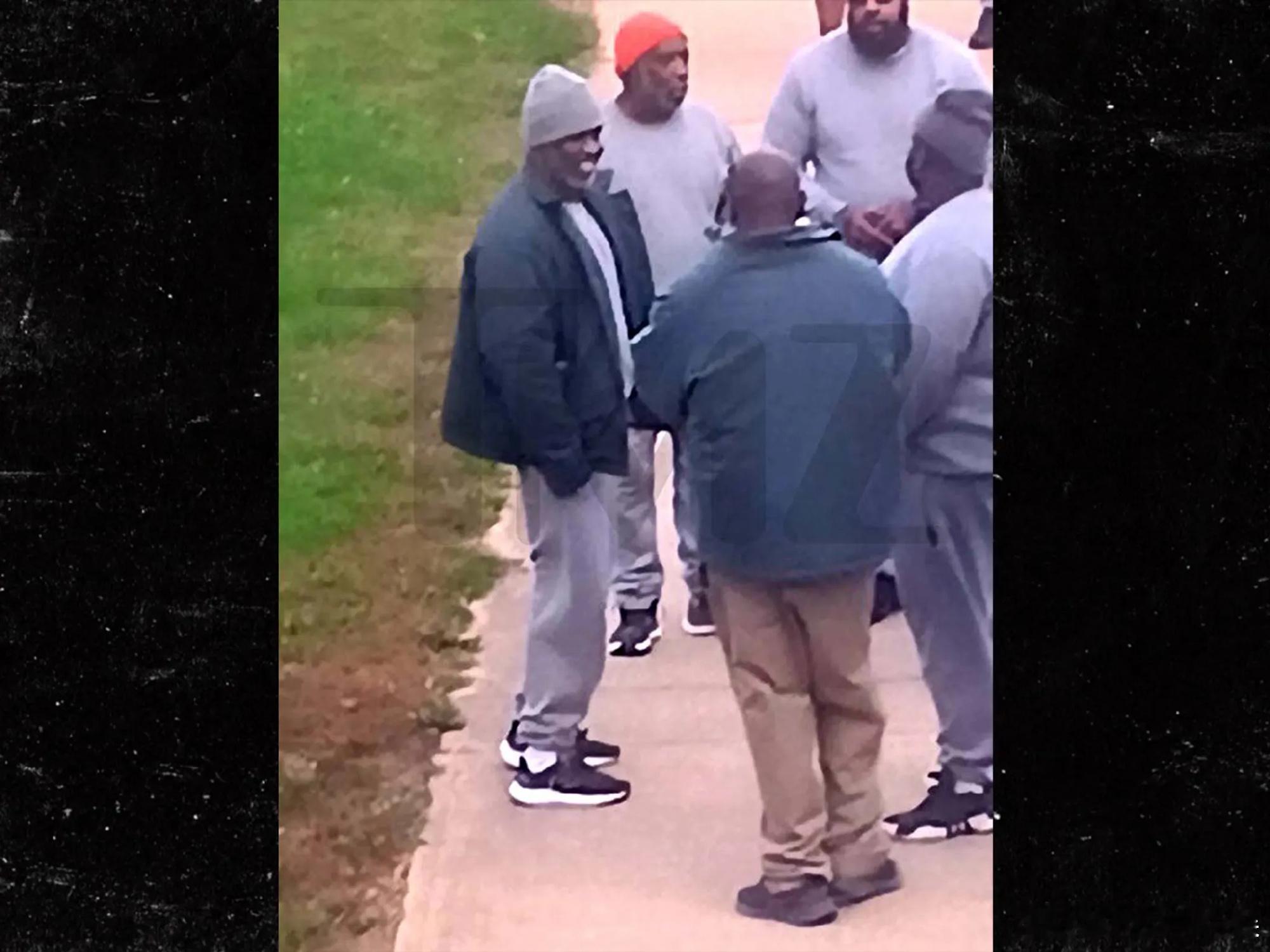 吹牛老爹服刑照 外媒曝光了吹牛老爹的服刑照,除了一张单人照带着橙色帽子,还有几张是他裹着厚厚的深蓝色外套、灰色裤子和灰色毛线帽和其他狱友交流。他因两项组织卖淫罪被判处4年零两个月(共50个月)监禁,由于目前已经服刑1年,未来还将服刑约3年。