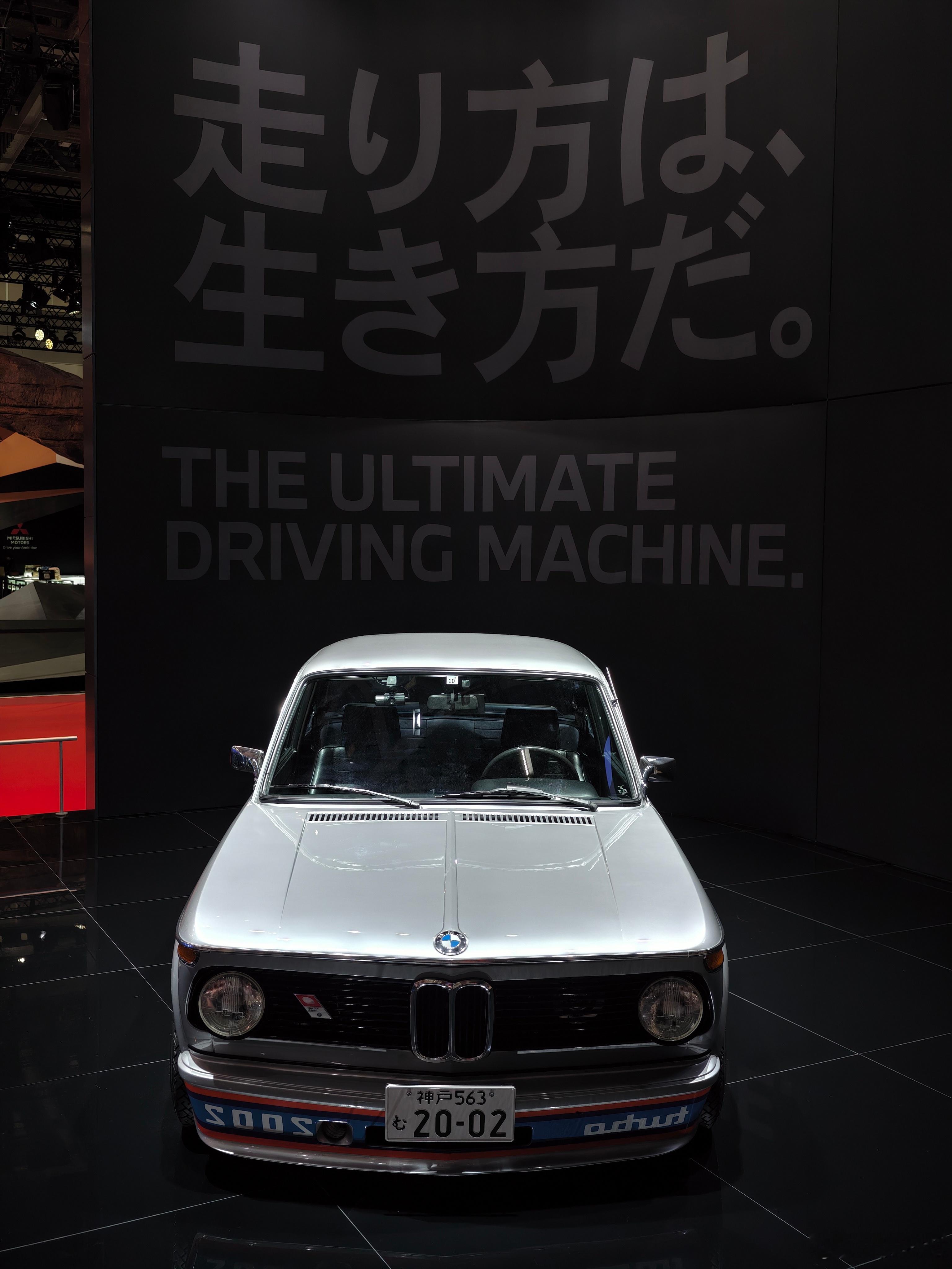 后来在 1973 年法兰克福车展上,BMW 推出了传奇版本 2002 Turbo,配 2.0 L 直列四缸 M10 涡轮增压发动机。那时候欧洲车厂还几乎没人敢在民用车上用涡轮。宝马敢这么做,是因为它在赛车项目(尤其是 F2)中积累了大量增压经验。银色车身配 BMW Motorsport 红蓝紫三色条纹。这是宝马第一次将“涡轮增压 + Motorsport 精神”结合,也成了日后 M 部门的美学起点。