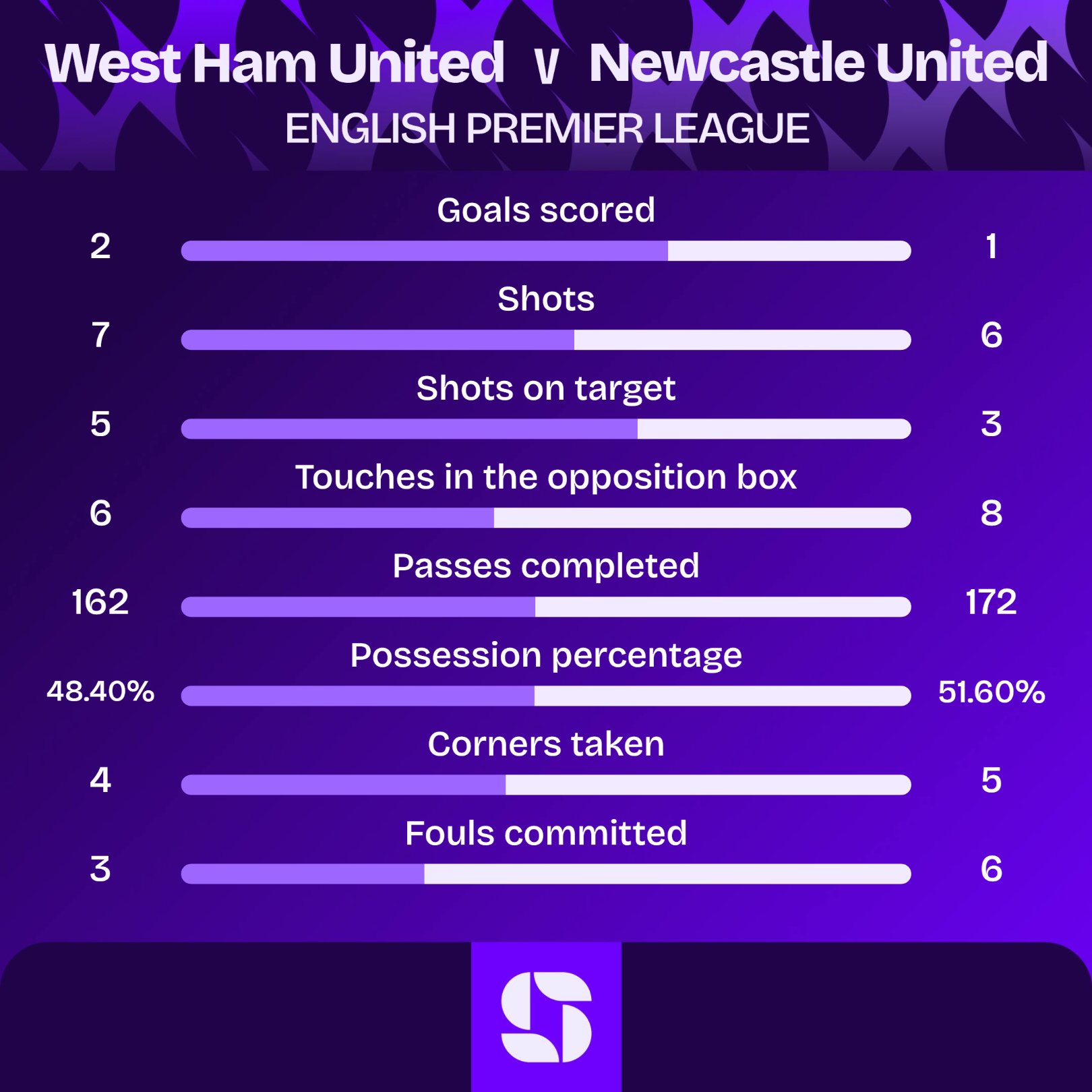 虎扑11月02日讯英超第10轮,西汉姆联半场2-1纽卡。