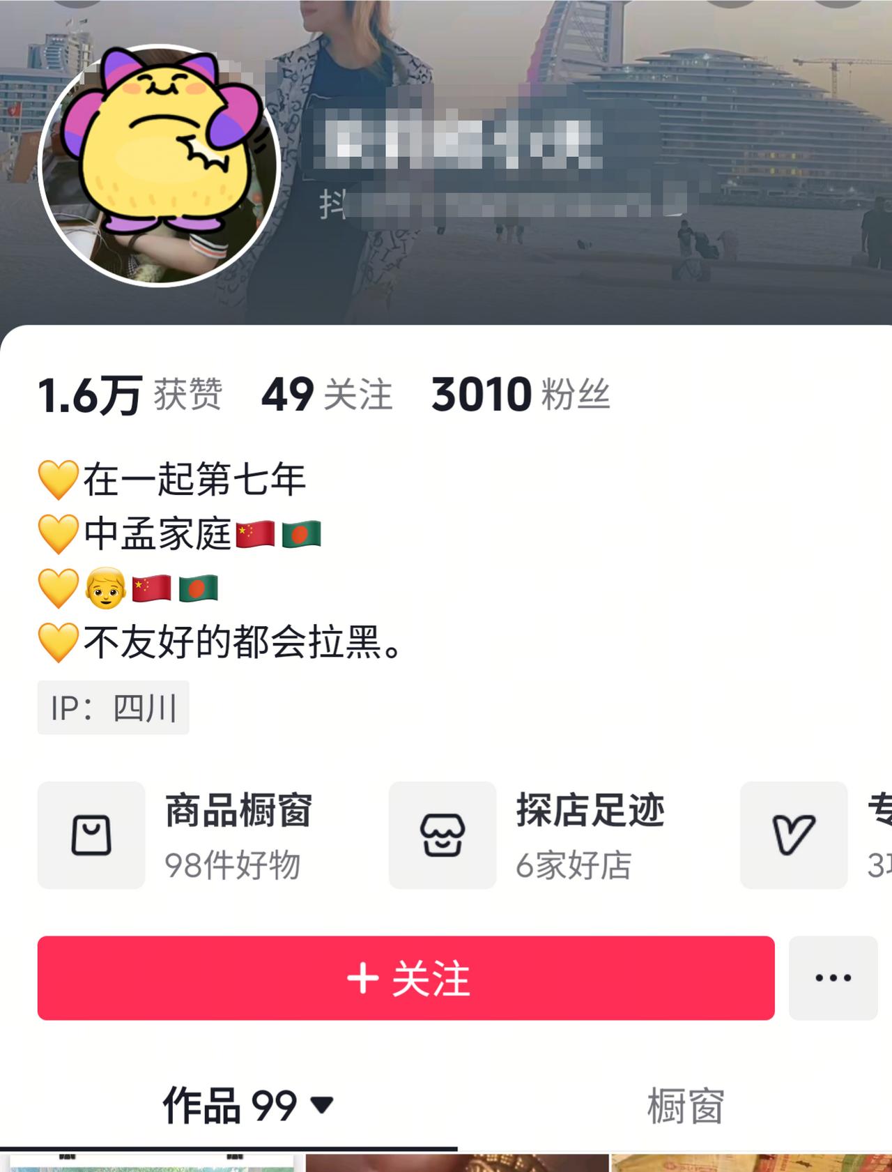 一个女人远嫁到孟加拉,经常在网上分享海外生活[灵光一闪]。昔日"十指不沾阳春水"的她,如今也戴上黑色头巾,看着像个西方的修女。似乎是为了融入当地,她经常分享在孟加拉的生活[机智]。 时常晒老公对她的宠爱,说她老公回家,都会给她带礼物。甚至连亲手做的咖喱鸡块,都被她称赞“比国内饭菜好吃多了"[笑哭]!搞笑的的是,当她有了混血儿子后,却毫不犹豫的给儿子入了中国籍,并坚定表态,自己和儿子"永远是中国人"[捂脸]。 看她ip现在好像在四川?她想让孩子以后国内上学,能更好融入这的环境[6]。有趣的是,她还不忘做起"国际红娘",对网友说想认识孟加拉帅哥,可以去联系她。对于这女人的说法,大家有什么看法呢[灵光一闪]?