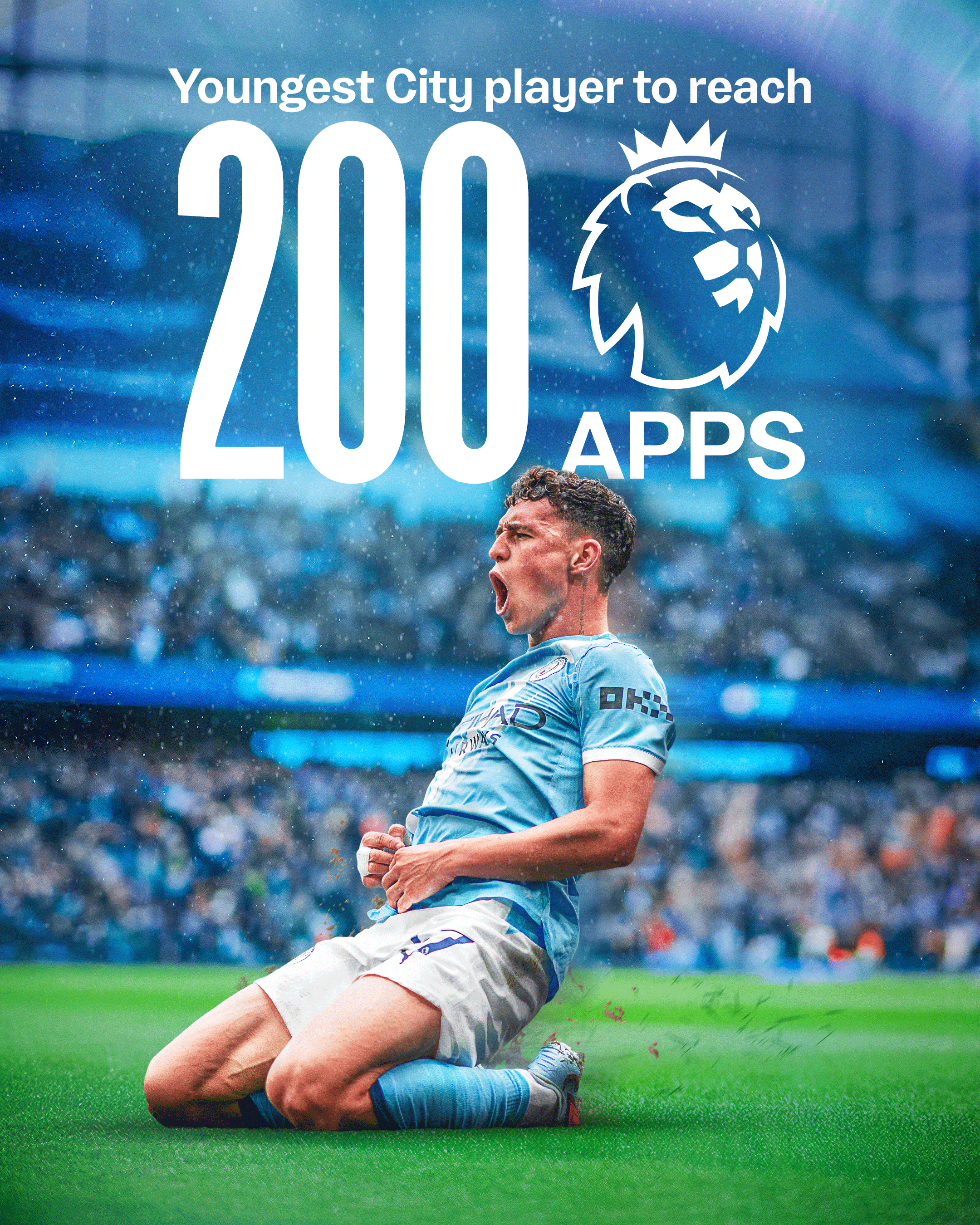 他也将迎来个人英超生涯的第200次出场。同时,他也成为了历史上达成英超200场最年轻的曼城球员。