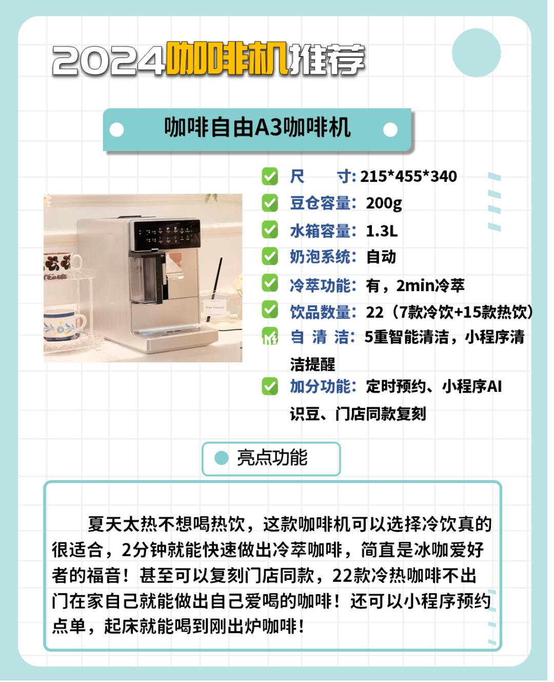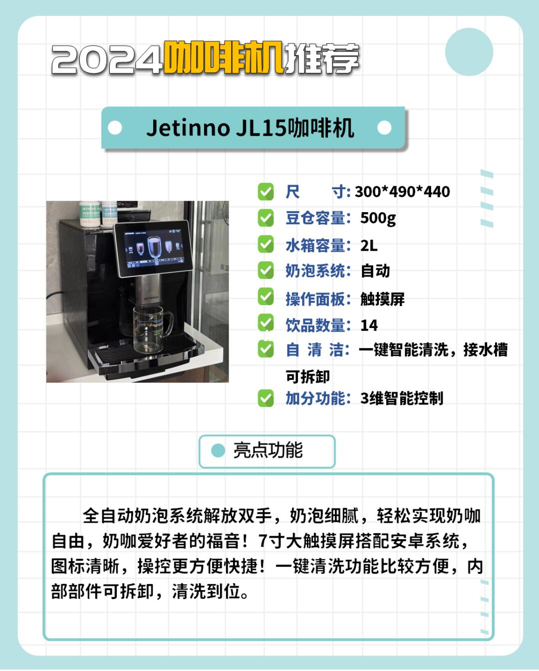 🔸全自动咖啡机:一键出杯,方便智能,适合时间不充裕的上班族、家庭和小型办公室用