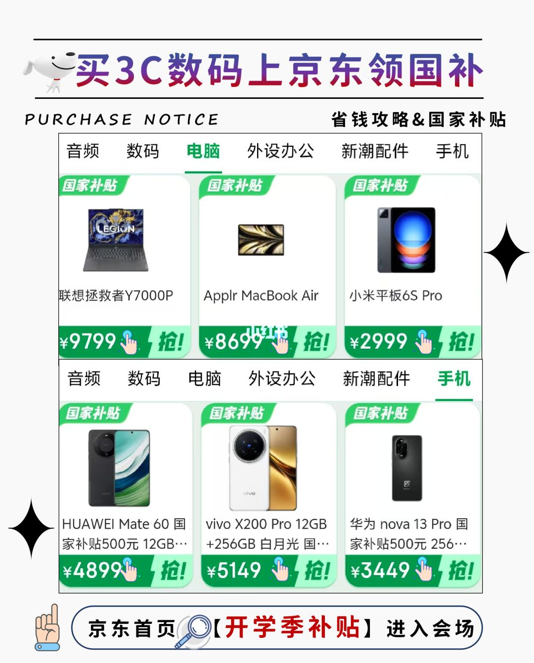 ‼想要开学季购买电子产品赶紧上京东3C数码,开学季国补的机会,不要错过了,去京东搜索🔍【开学季补贴】立即开启超值购机之旅✨赶快行动起来吧!
