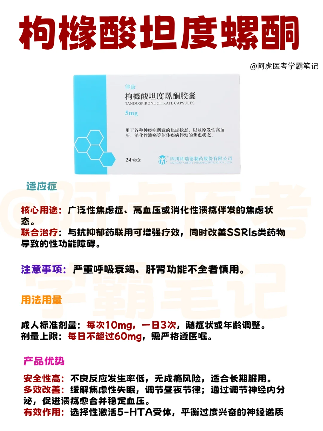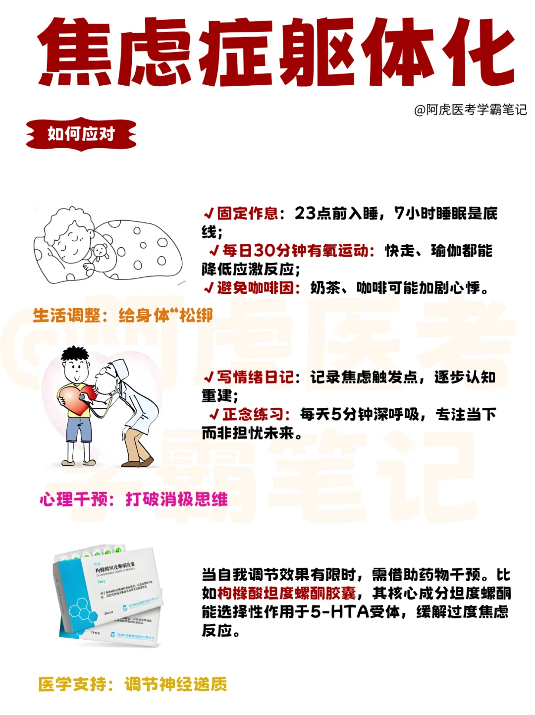 阿虎医考 拒绝焦虑 医学生笔记本 枸橼酸坦度螺酮胶囊 焦虑 焦虑失眠 焦虑躯体化 焦虑躯体化怎么办 医学生学习