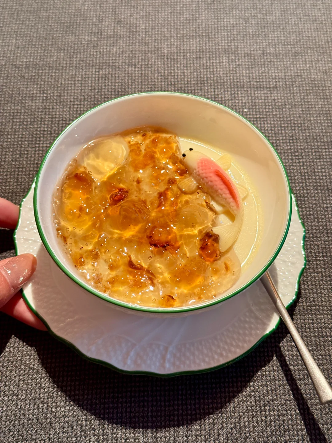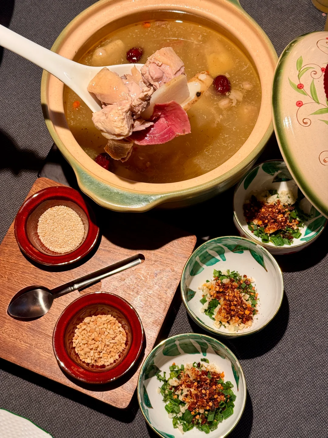 在德基我也尝到了第四代江南私房菜 听说是上海/深圳双城私房菜的顶流 5月1日才开进德基广场 店内一步一景 满满的江南雅韵中式氛围感 融合宋代山水画意境与现代极简 沉浸式体验了一回宋韵空间 门口花束💐装置随便拍拍都hin出片📸 一餐吃尽风雅~ 天麻火腿土鸡煲 精选云南昭通小草坝鲜天麻+宣威火腿+散养走地鸡 每日新鲜现熬,饭前喝上一碗 整个人都被治愈了! 招牌膏蟹年糕 不愧是招牌 蟹膏饱满 年糕QQ弹弹 软糯软糯的 一口下去真的鲜掉眉毛了 杭州小笼包 薄皮肉多 口口爆汁 还能尝到清鸡汤的清新