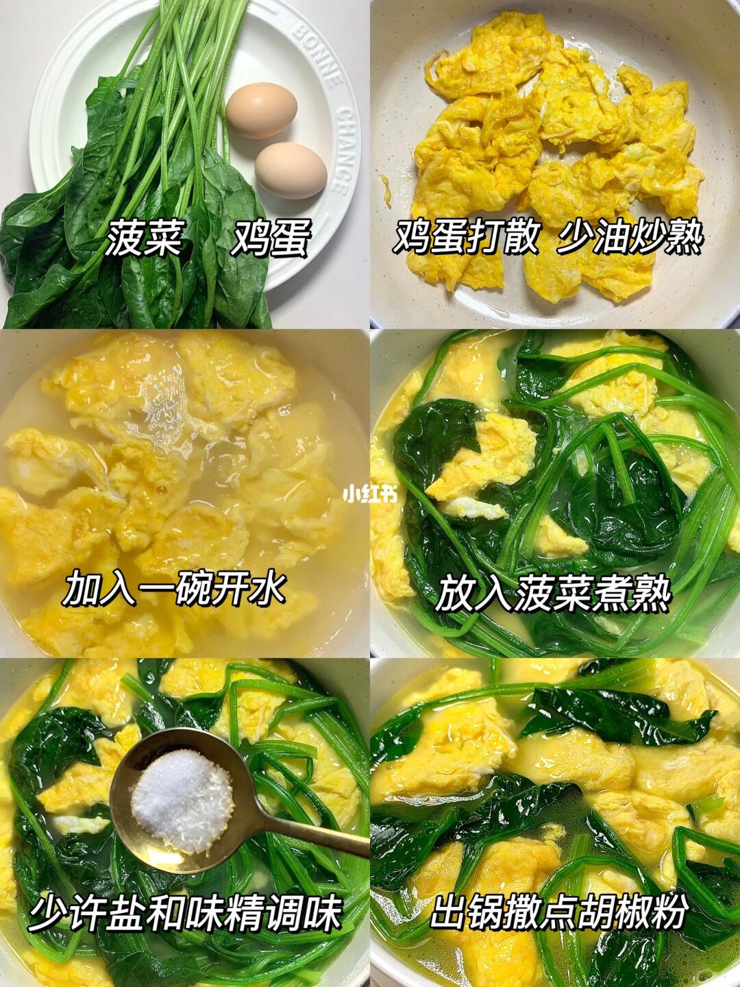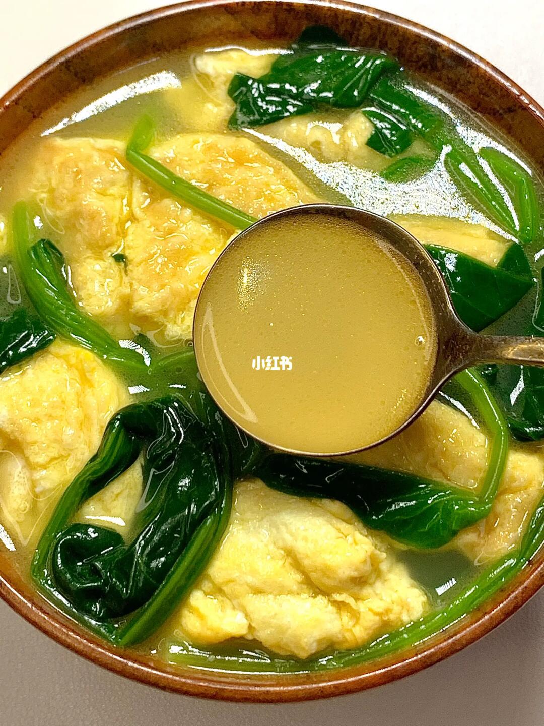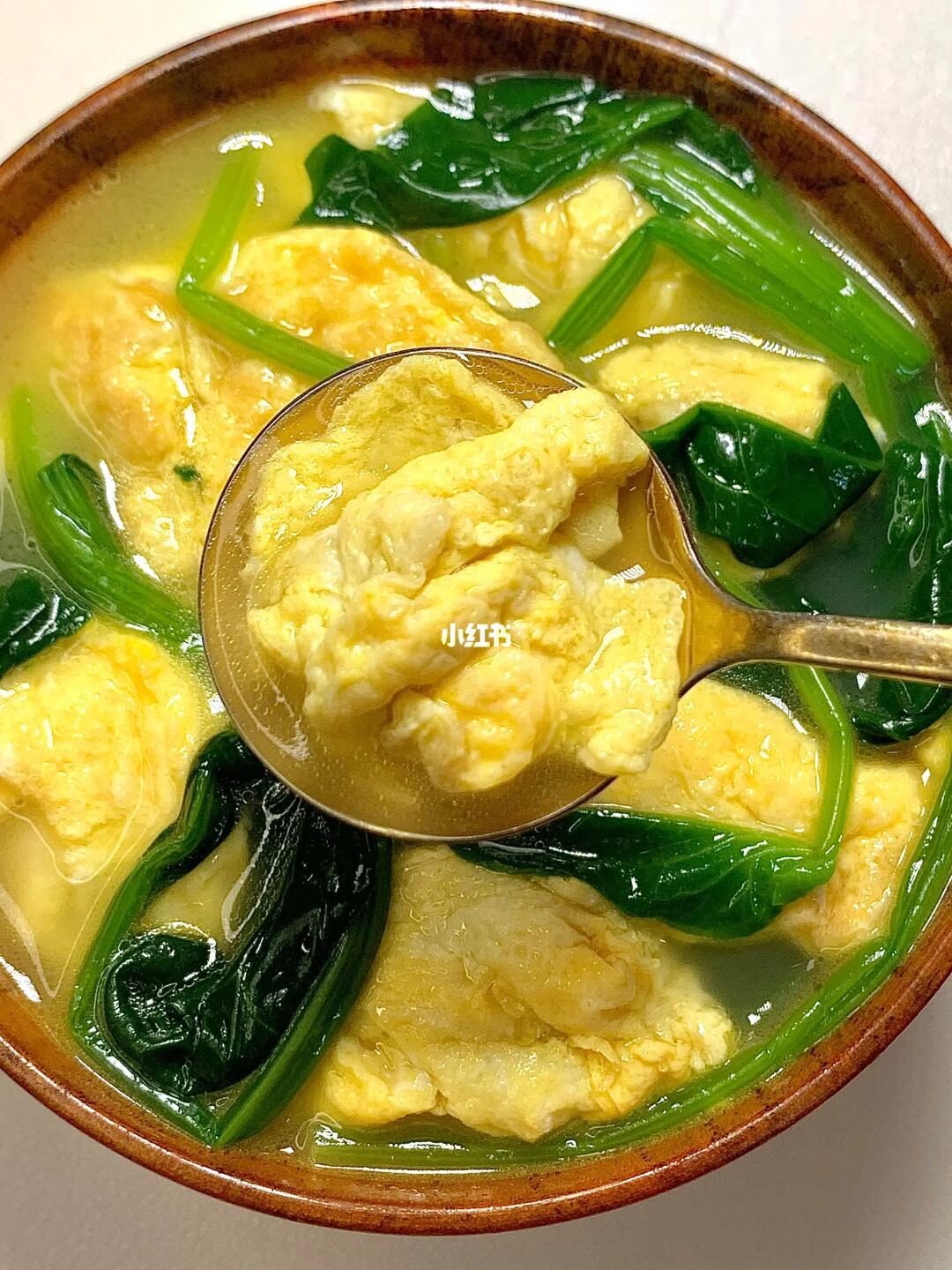 菠菜鸡蛋汤真的鲜掉毛!!! 太好喝了!低卡又营养!! 做法超简单!几分钟就能搞定! 真心推荐给所有减脂的姐妹们[飞吻R] [彩虹R]食材:鸡蛋 菠菜 [种草R]做法:热锅少油把鸡蛋炒熟 加入一碗开水,放入菠菜煮2分钟,加少许盐和鸡精 白胡椒粉调味即可✅