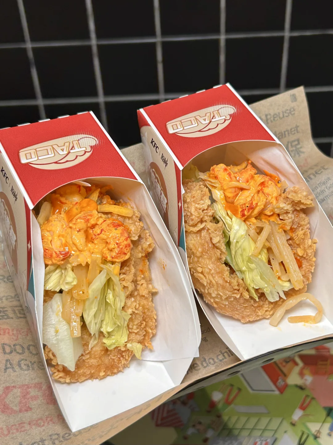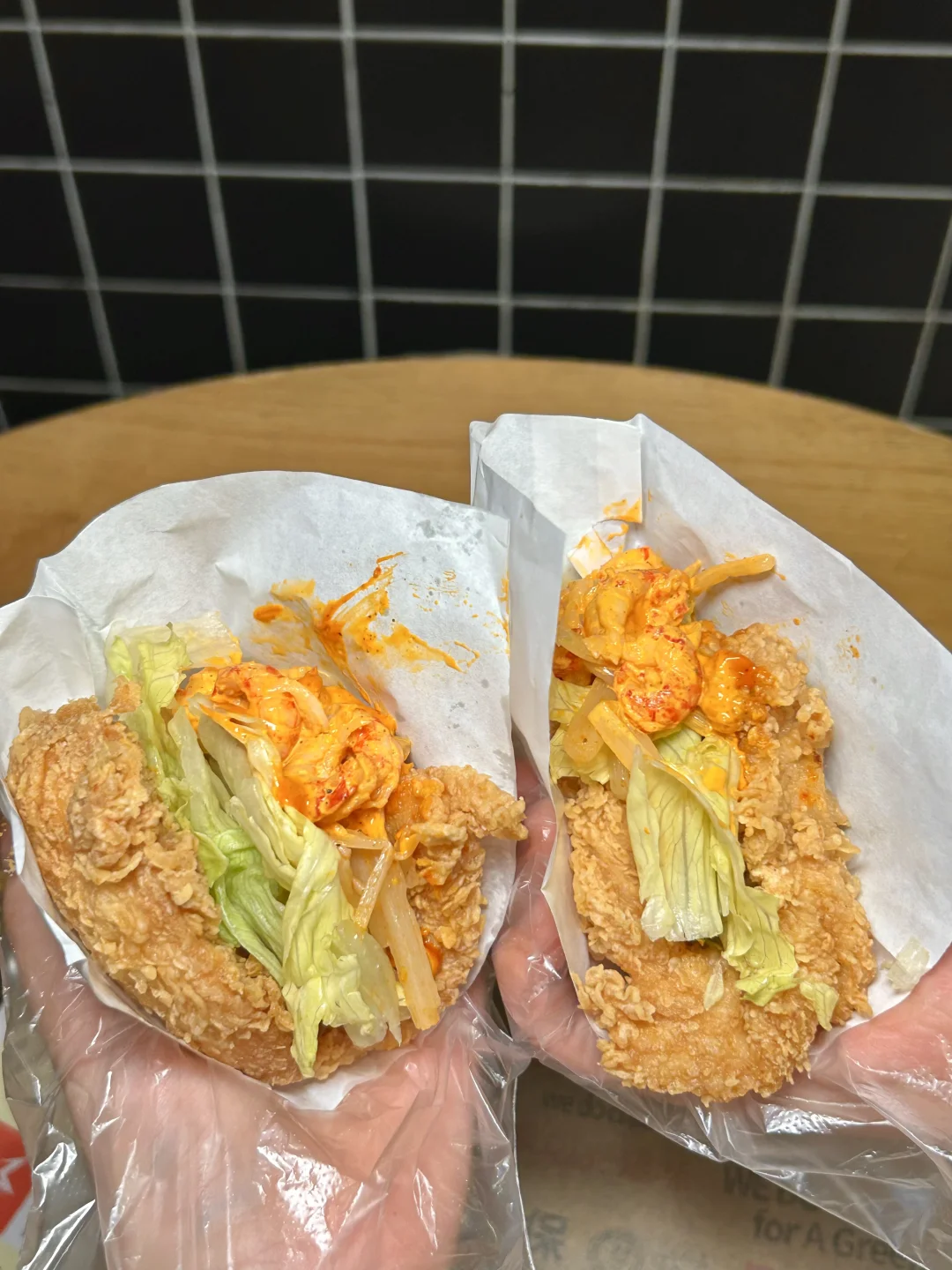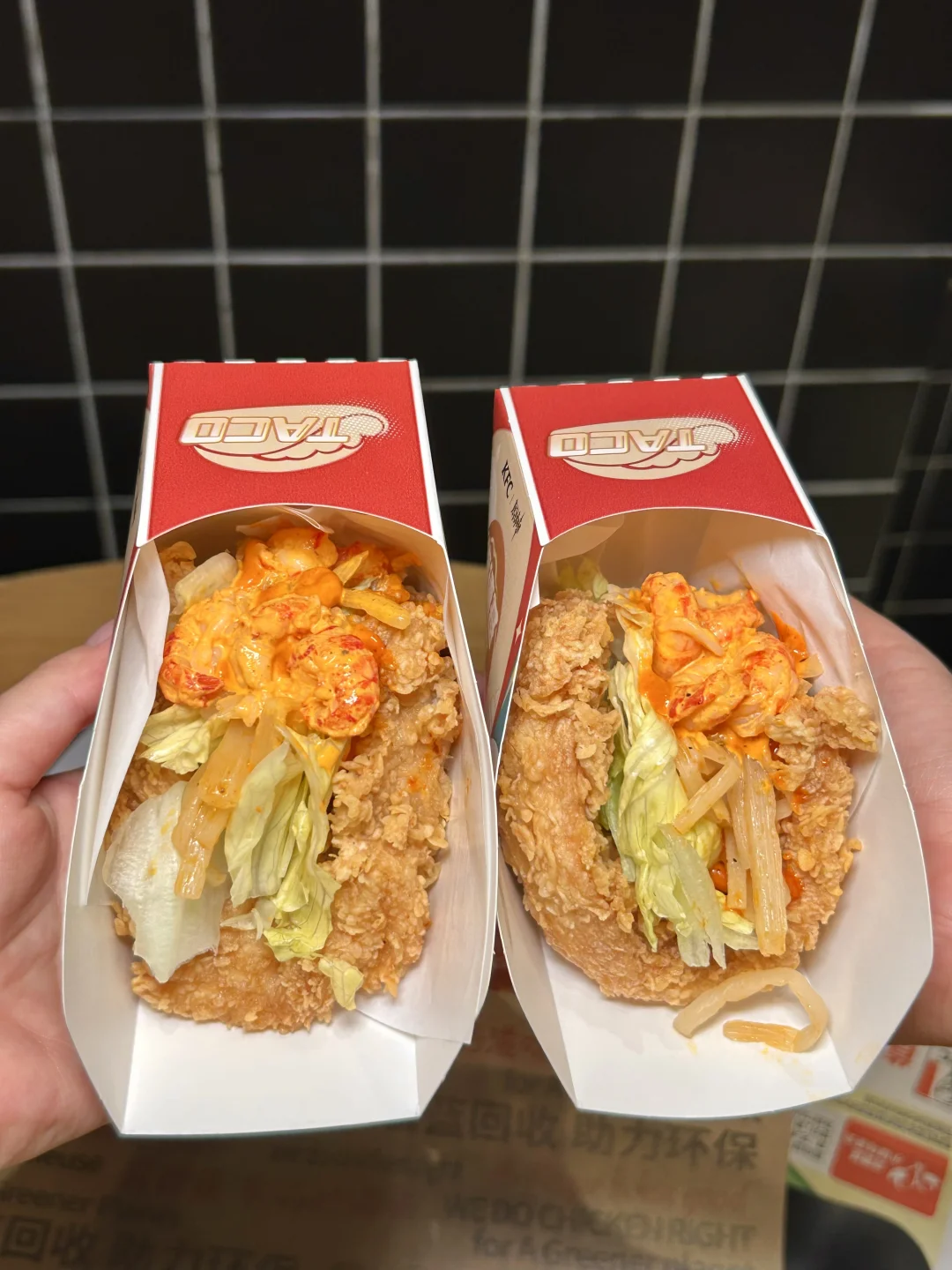 家人们记得蹲一波!!!! 香辣小龙虾塔可 又来了!!忘不了这一口🥹 鲜嫩多汁鸡排➕Q弹紧实小龙虾🦞 香辣爽口 太爱了!!口感层次超级丰富! 会员凭quan尝鲜2个25.9r💰 活动时间7.7~7.13!!别错过啦~
