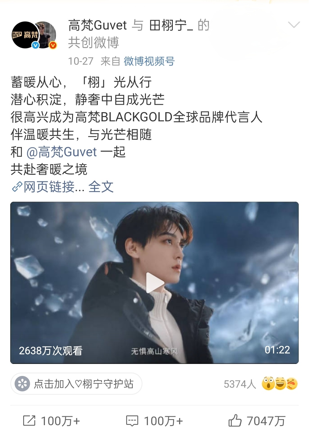 田栩宁✘高梵官宣共创博点赞破7000w了💥成为微博第一个也是唯一一个点赞破7000w的明星!