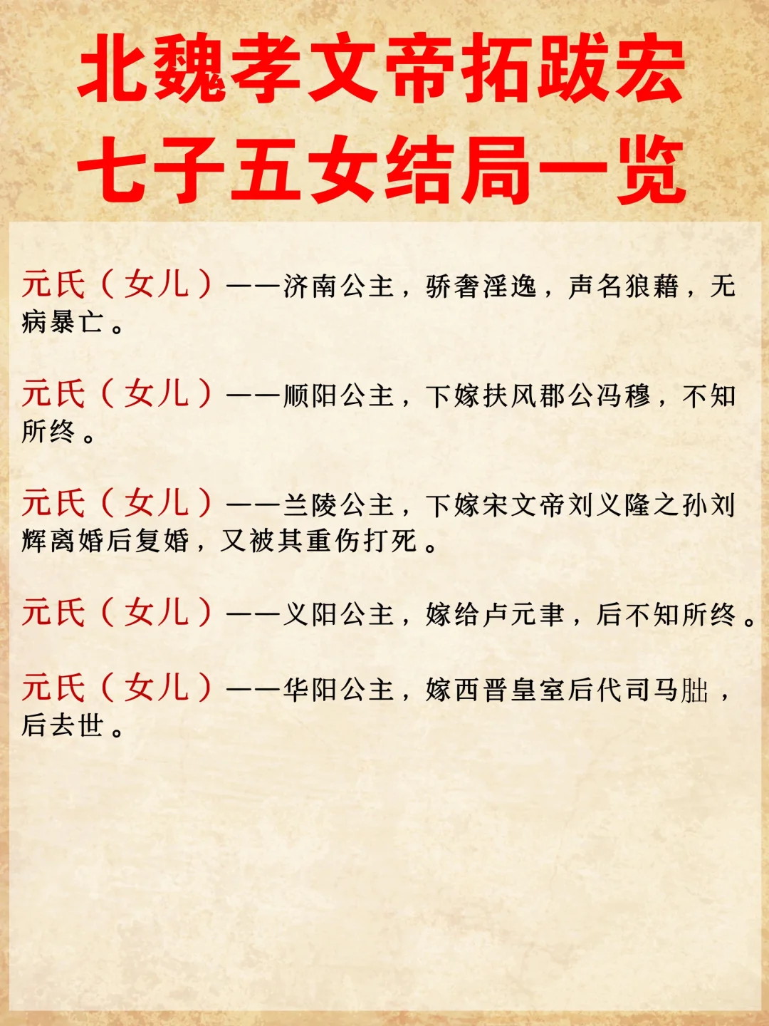 长子元恂,谋反未果,15岁赐死; 次子元恪,即宣武帝,33岁驾崩; ?...