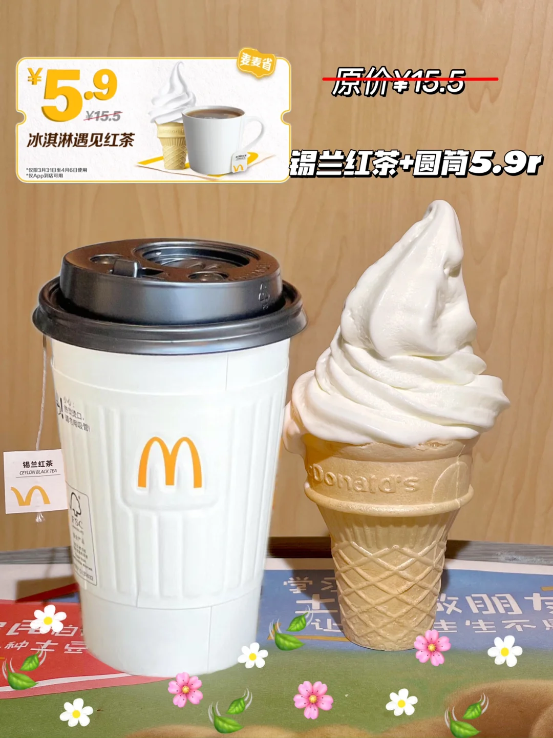 5.9r的红茶+原味圆筒🍦,茶香混合着奶香,清清爽爽真的巨巨巨好喝!!