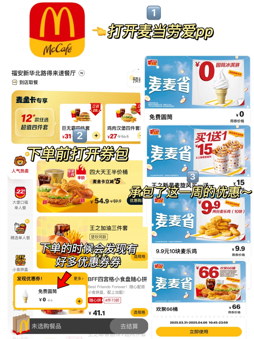 ✅0 元冰淇淋、9.9 元10块麦乐鸡、王之新星麦旋风买1送1… 麦麦省直接把我的春日野餐整明白了~