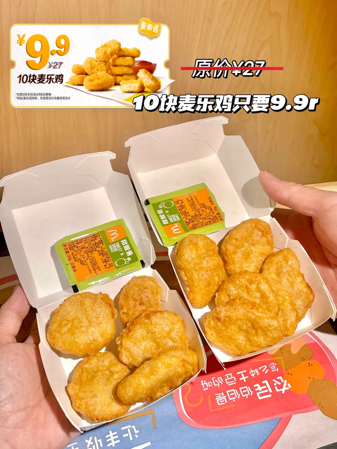 ✨9.9r十块麦乐鸡,原价27r,差不多帮我省下三分之二价格,真的会让我激动到尖叫!~