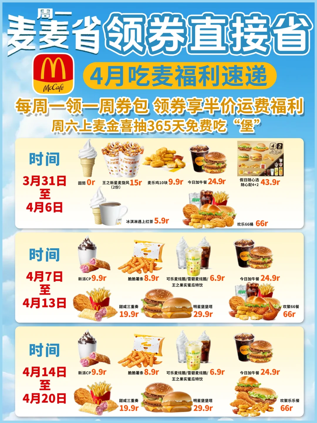 这不给你们整理了本周麦麦省优惠套餐(3.31-4.6 ):