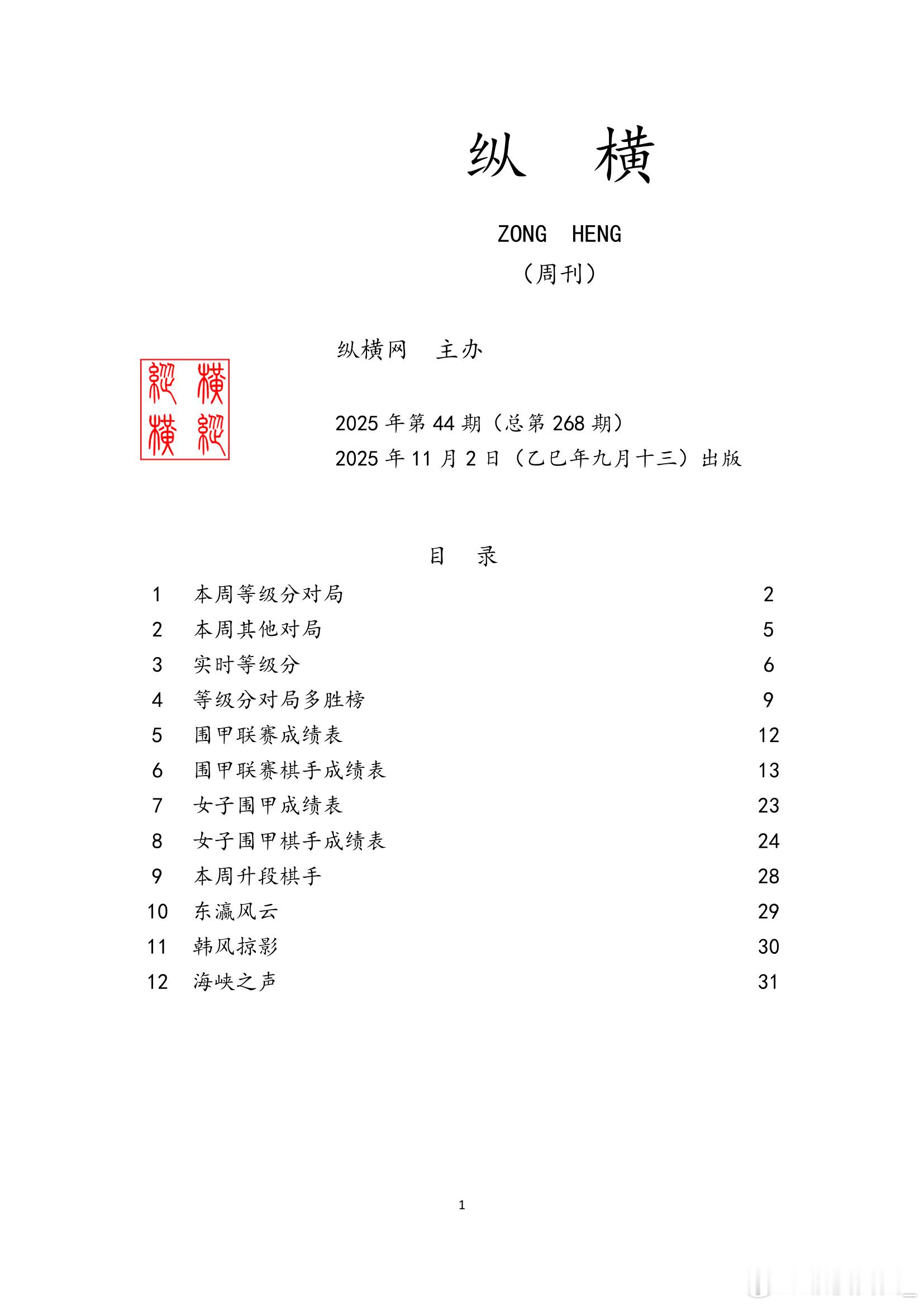 围棋历史 纵横周刊(2025-44)上