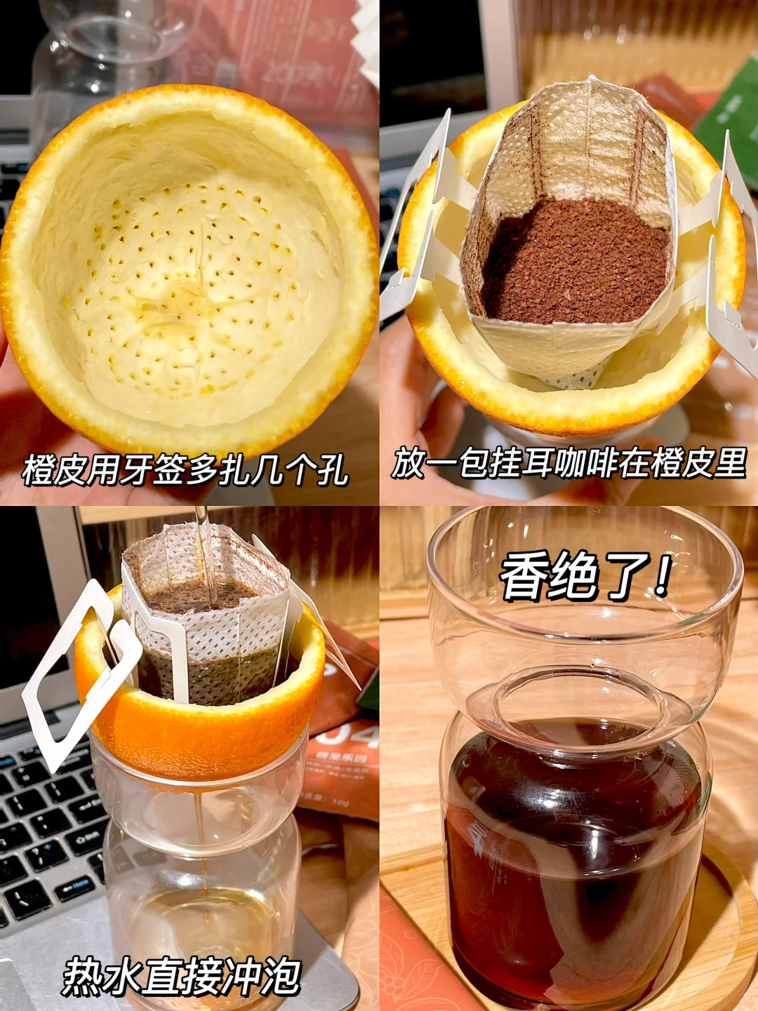 橙子皮+挂耳咖啡 几分钟就可以搞定一杯橙皮美式咖啡香味融合橙香真的好好喝!!做法参考图2⃣️ 非常简单!美式脑袋一定要试试!