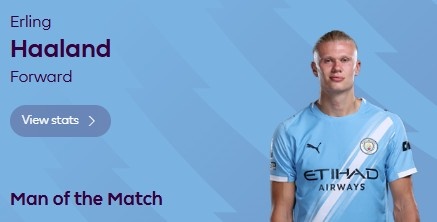 直播吧11月3日讯2025-26赛季英超第10轮,曼城主场3-1伯恩茅斯。哈兰德首发出战,贡献双响,赛后当选英超联赛官方本场最佳球员。
