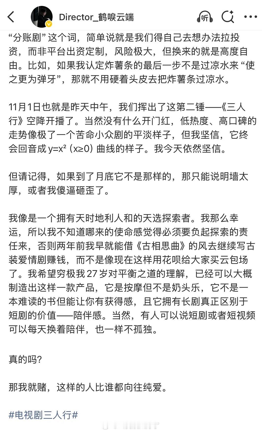 真•0宣发剧《三人行》的导演心声,看起来还挺心酸的。[融化]