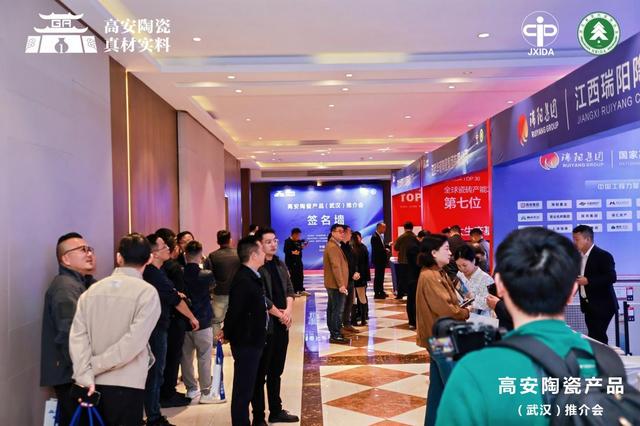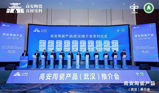 会议期间,高安市政府发布了《高安陶瓷团体标准》。6家陶瓷企业在会场进行产品布展的同时,还陆续上台向与会嘉宾分别介绍了各自产品特色、创新设计、绿色环保、品质管控等方面的核心优势。最后,推介会通过高安陶瓷行业协会与湖北省各市州装饰协会签订合作协议仪式,把此次武汉推介会现场气氛推向高潮。