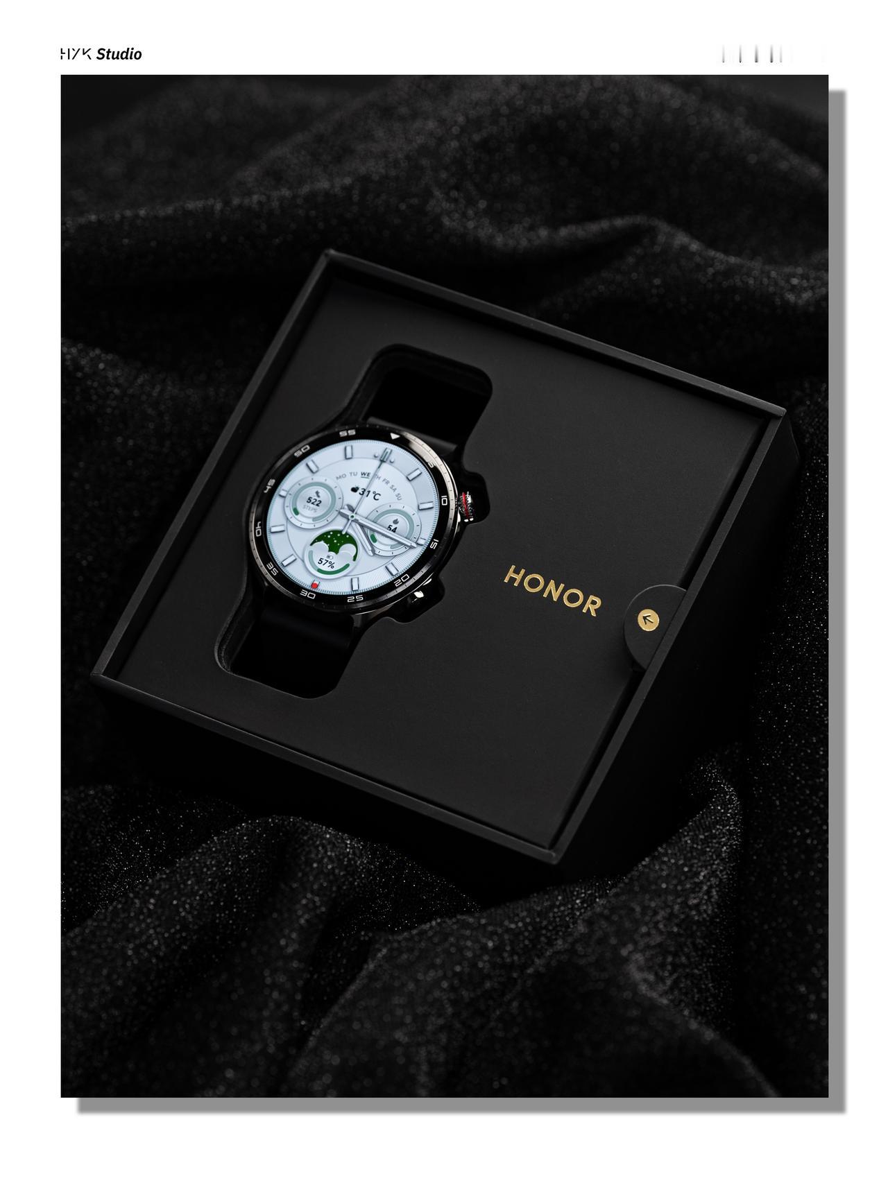 HYK图赏|荣耀手表5 Pro 这款是“天文家”版本,经典的圆形表盘,表身采用双层拼接工艺,外圈是金属材质,内圈是纳米微晶陶瓷,这样的搭配让整个表身有了清晰的分层,观感和质感都不错。表冠上的按钮有一圈红色点缀,转动时候的阻尼感很棒。最长续航10天左右,售价1699元,你喜欢吗?