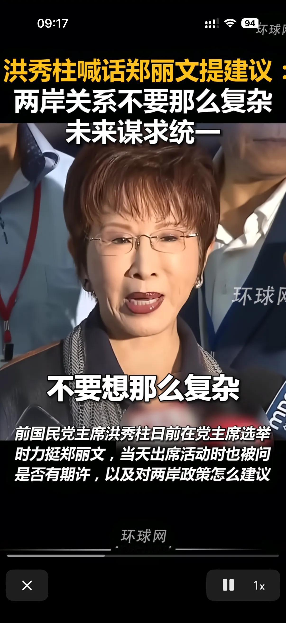 洪秀柱喊话郑丽文两岸要谋求统一! 郑丽文刚当上国民党主席不久后,洪秀柱就喊话郑丽文,称两岸关系没有那么复杂,未来就是要谋求统一! 要知道历年以来很多的台湾政党领袖,无论是在公开还是私下都会避免谈论台湾统一问题,也就只有洪秀柱从来不会回避这个问题,而且一直以来也是坚定的两岸统一拥护者! 最近郑丽文居然要去日本和仇中的日本右翼领袖,现任日本首相高市早苗会面! 这也许就是洪秀柱女士能被邀请参加93阅兵的原因了!