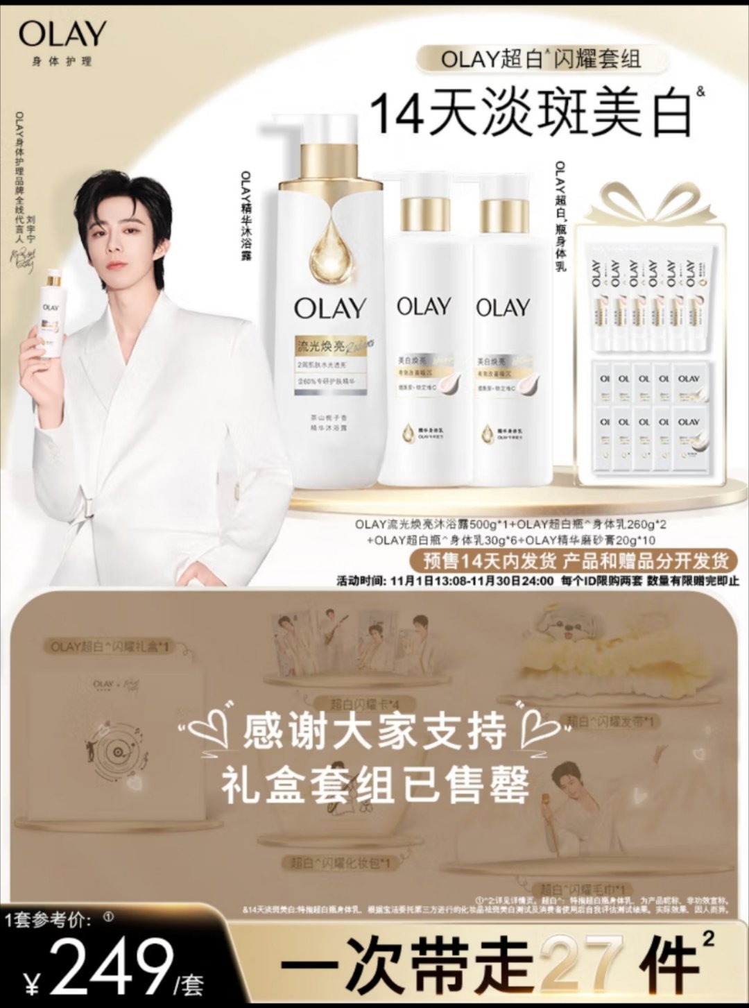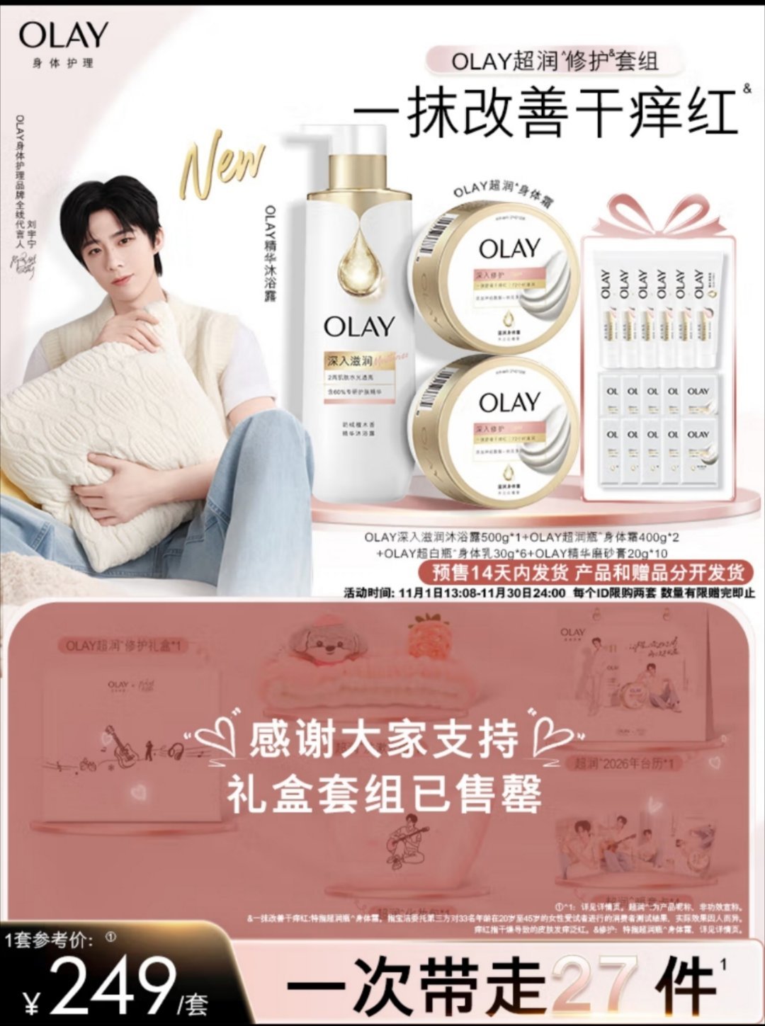 刘宇宁玉兰油代言新宣星品影响力热度第一。[期待][期待]另外玉兰油身体乳套装开售