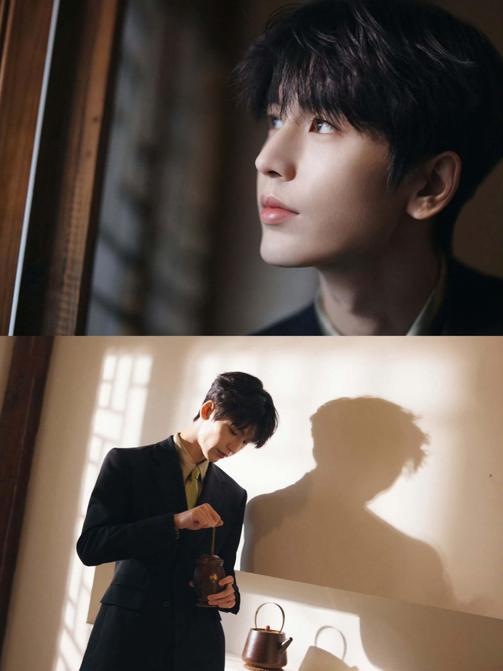 黑西装搭配绿领带好帅好苏