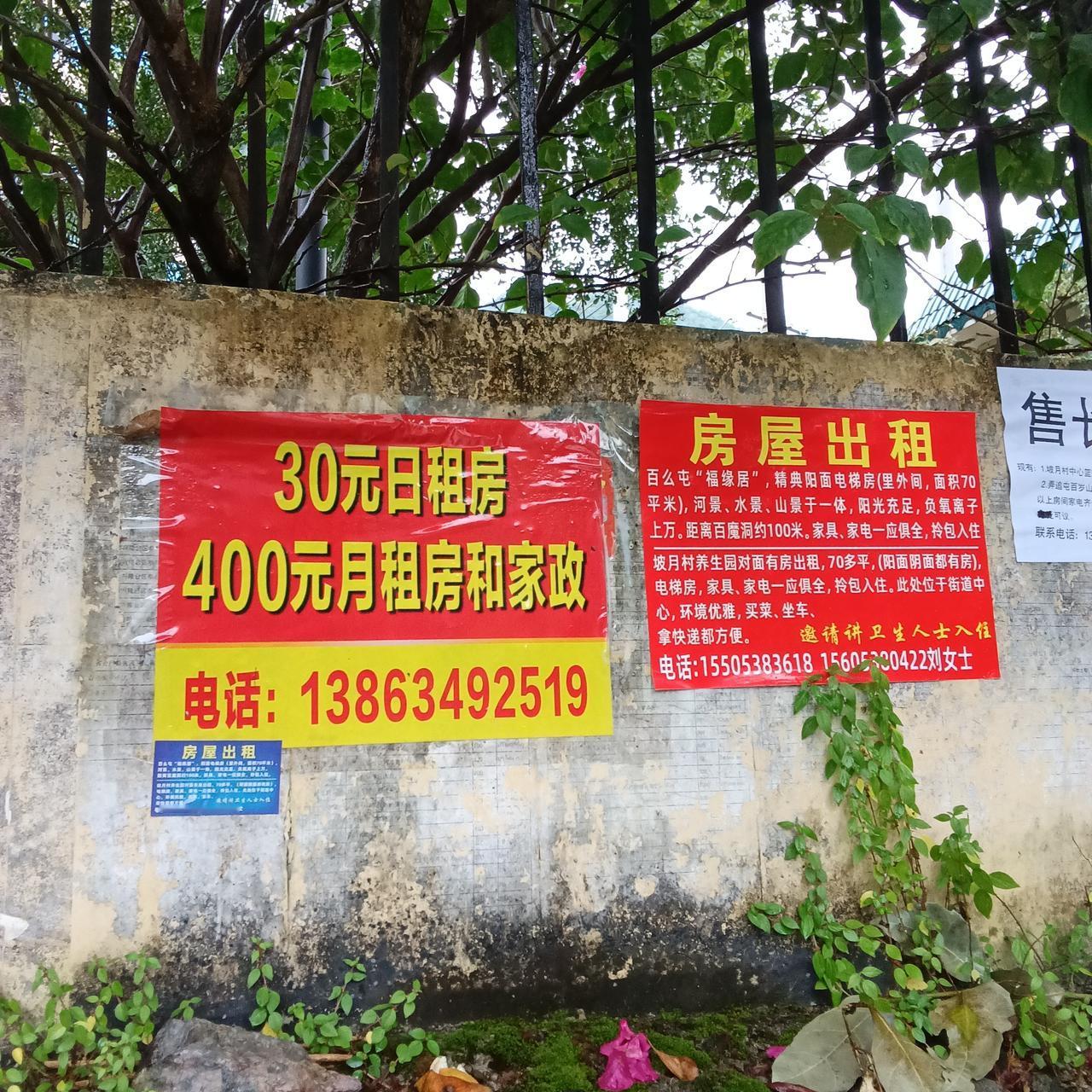 巴马租房信息来了。 我们虽然到巴马仅仅一周的时间,却有老家的朋友委托我们帮助找房,准备在本月下旬过来。 今天我和老伴用了整整三个小时走访了多个街道村屯,找到了以下图片中的信息。 经过电话了解和实地走访,了解到当前巴马坡月村弄追屯百魔屯屯房源仍然很充足。 只是差异性很大。如果是电梯房,根据朝向、房间大小、设施不同,租金在1000~1700元不等。基本都在三个月以上起租。 不管怎样,今天的劳动还是有收获的。我们把情况转达给朋友,希望对他有所帮助,同时也希望对有计划来巴马康养的朋友有些许指点意义。 图片中含有信息,不知能否被审核通过,请头条助手读完全文可以理解。