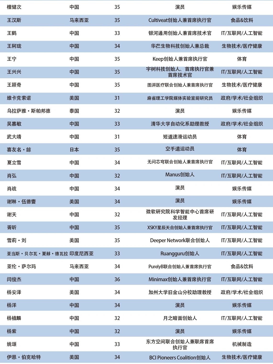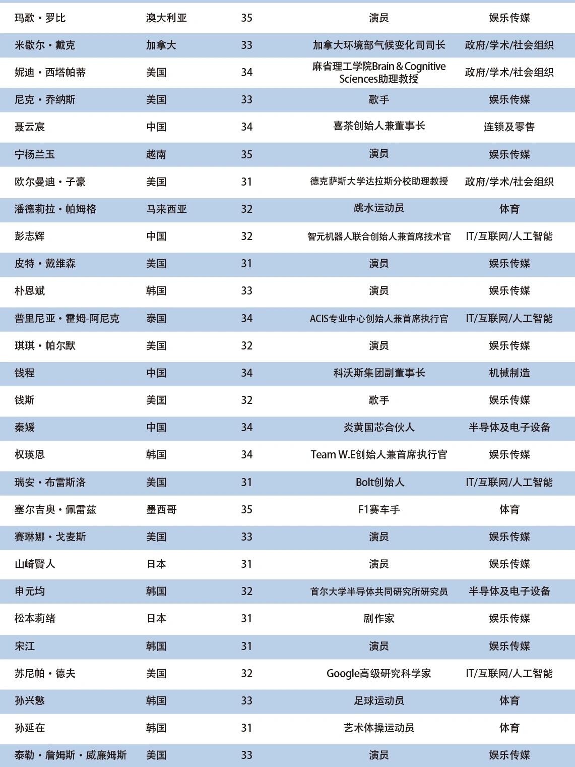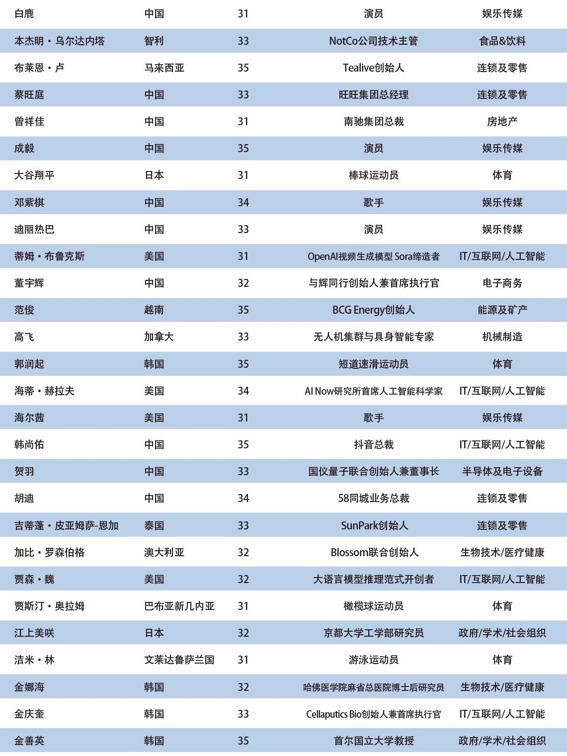 2025亚太U35行业先锋领袖榜单
