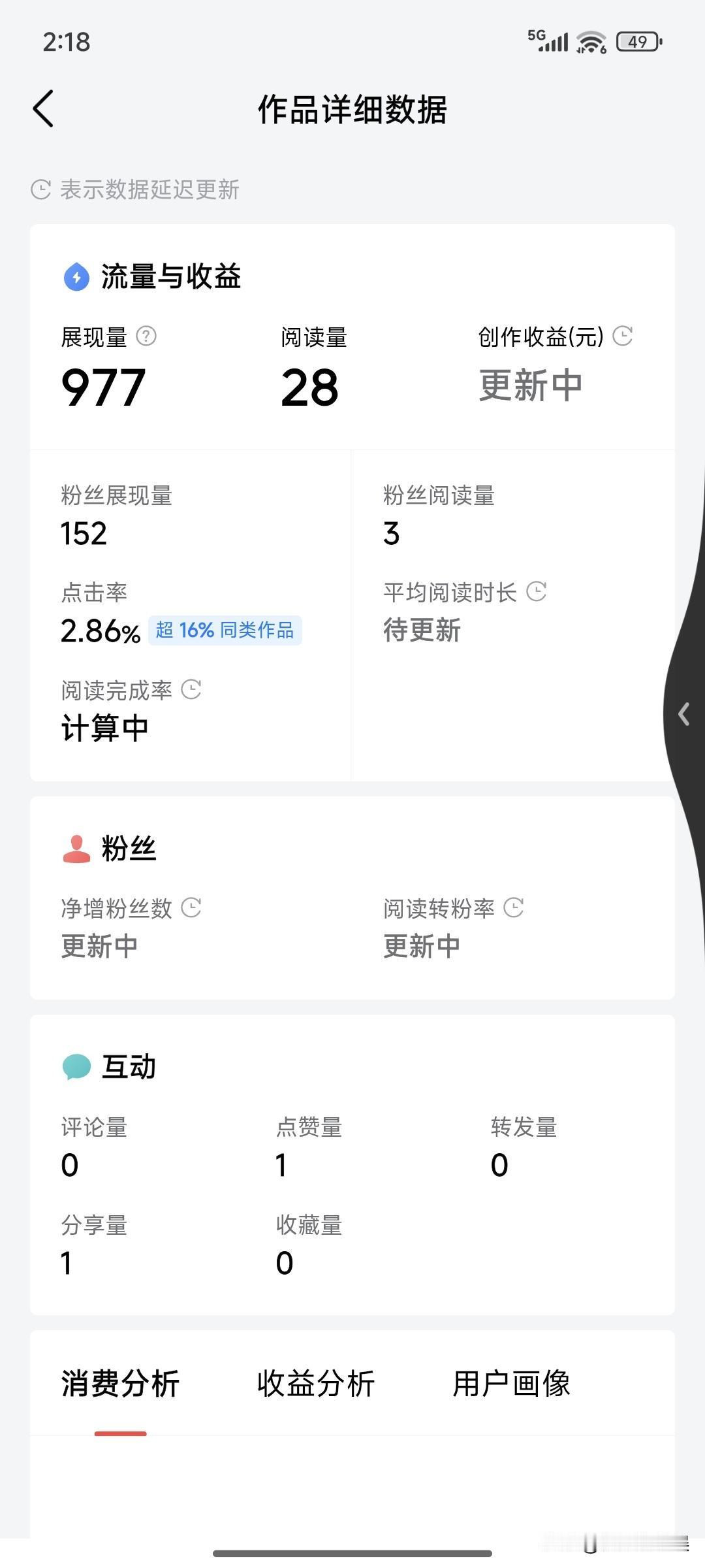 写文章收益少还要不要继续写 其实很多作者都在思考这个问题 尤其是最近几天,流量特别不稳定,一下给了很多展现量,但是阅读率又跟不上,单价更是降了又降 总的来说,跟前两年相比较的话,现在基本上就是没得搞 但是可以发现,还是有很多人写 其实坚持的大部分人,并不是为了收益,而是一种习惯,用写头条的方式表达自己的想法,生活中可与言者无二三,而网络却是很好的机会