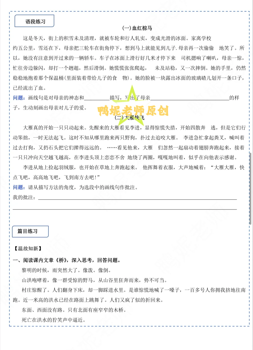 【六上】第四单元阅读考点训练提升出炉啦‼️