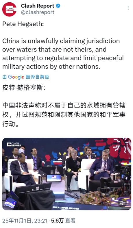 美国战争部长皮特·赫格塞斯北京时间11月1日晚,表示:“中国非法声称对不属于自己的水域拥有管辖权,并试图规范和限制其他国家的和平军事行动。” 美国战争部长赫格塞思这番言论荒谬至极! 要知道中国对南海的主权主张,是在几百年历史里慢慢形成的。明清时候的官府就设立了专门机构管辖这些海域,沿海渔民世世代代在这儿打鱼、避风,连老辈人传下来的海图上,都清清楚楚标着这些岛礁的名字。这些历史老底子摆在那儿,不是谁嘴一张就能否定的。 历史摆得明明白白,国际法也站在中国这边。《联合国海洋法公约》里写得很清楚,沿海国对自己的领海、毗连区有天然管辖权。 中国的南海诸岛及其附近海域是中国领土的一部分,这在公约框架下完全合法合规。外交部发言人早就说过,中国对南沙群岛及其附近海域拥有无可争辩的主权,这话可不是空穴来风。 更可笑的是美国嘴里的“和平军事行动”,美国根本不是南海问题的当事国,却天天把军舰军机往这儿派。去年一年,美国军舰就好几次闯进南海岛礁附近海域,还拉着盟友搞联合军演,战斗机在天上低空盘旋,军舰在敏感海域来回晃悠。这哪是和平行动?分明是上门挑衅找事。 每次美国军舰来挑事,中国海警船都会依法驱离,全程保持专业克制。中国从来没主动惹过事,反倒是美国,动不动就派舰机抵近侦察,最近的时候离中国岛礁就几海里。这要是换了美国自家门口,估计早就出动军队拦截了,哪还轮得到别人在那儿说三道四。 中国在南沙岛礁搞建设,也全是为了正经事。这些岛礁远离大陆,南海又是台风高发区,过往船只经常遇到危险。中国在岛上建了避风港、气象观测站,还设了搜救设施,就是为了给各国船只提供帮助。永暑礁上的医院,不光给驻守人员看病,还能帮附近的渔民应急。这些都是实实在在的和平用途,哪儿来的“限制他人”? 美国这套双重标准玩得也太溜了。有些国家在非法侵占的中国南沙岛礁上大兴土木,盖军事设施,美国半个字都不说。中国在自己的领土上搞点民生建设,它倒跳出来指责。这种明显的偏见,明眼人一看就知道是怎么回事。 连东盟国家都看得很清楚。之前中国和东盟国家发表过联合声明,明确说南海问题要由直接当事国通过谈判解决,反对外部势力插手。大家都想把南海建成和平合作之海,没人愿意跟着美国趟浑水。毕竟地区稳定了,各国才能好好发展经贸、搞渔业,这才是真的惠及所有人。 中国一直奉行防御性的国防政策,从来没想过要在南海搞扩张。和东盟国家推进“南海行为准则”磋商、建立海上紧急事态热线,这些都是为了减少误解、维护稳定。反观美国,一门心思要把南海变成大国博弈的角斗场,根本不管地区国家的真实需求。 说到底,赫格塞斯这番话就是故意挑事。美国想靠着军事力量在南海刷存在感,好牵制中国发展。可现在的南海不是一百年前了,中国有能力护着自己的地盘,周边国家也明白和平的重要性。他这番话除了暴露美国的霸权心思,根本得不到任何支持。最后只会落得个自说自话的下场,没人真把这当回事。
