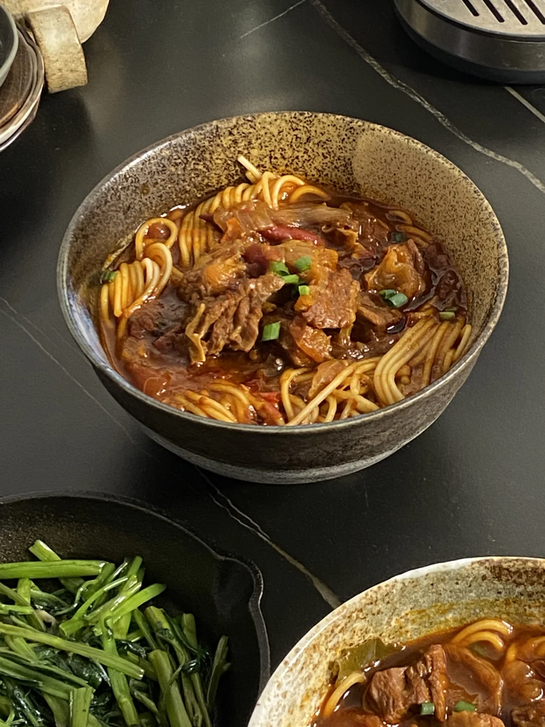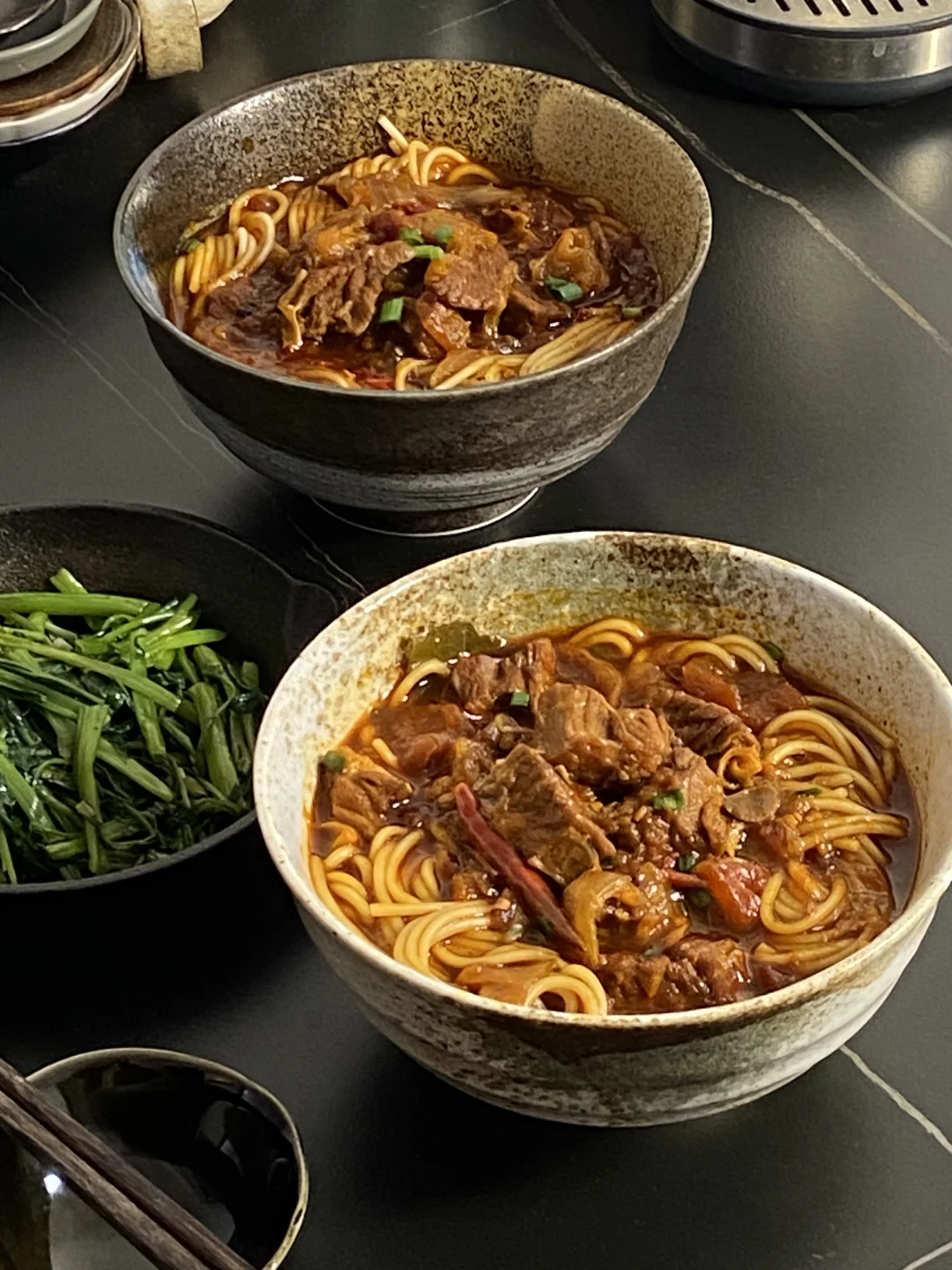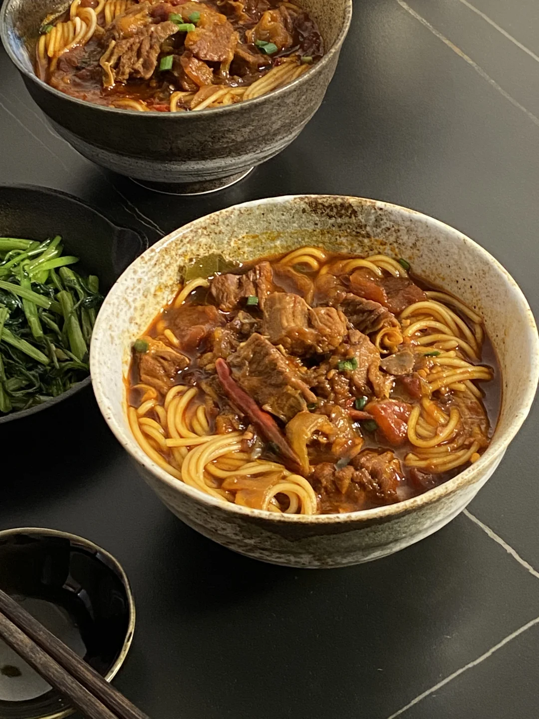 周末在家买了牛腩,简单炖一个红烧牛腩做面条吃,天冷这会儿刚好吃点牛肉,这一碗红烧牛肉面好吃,热汤下去身子暖了,肚子也填饱了