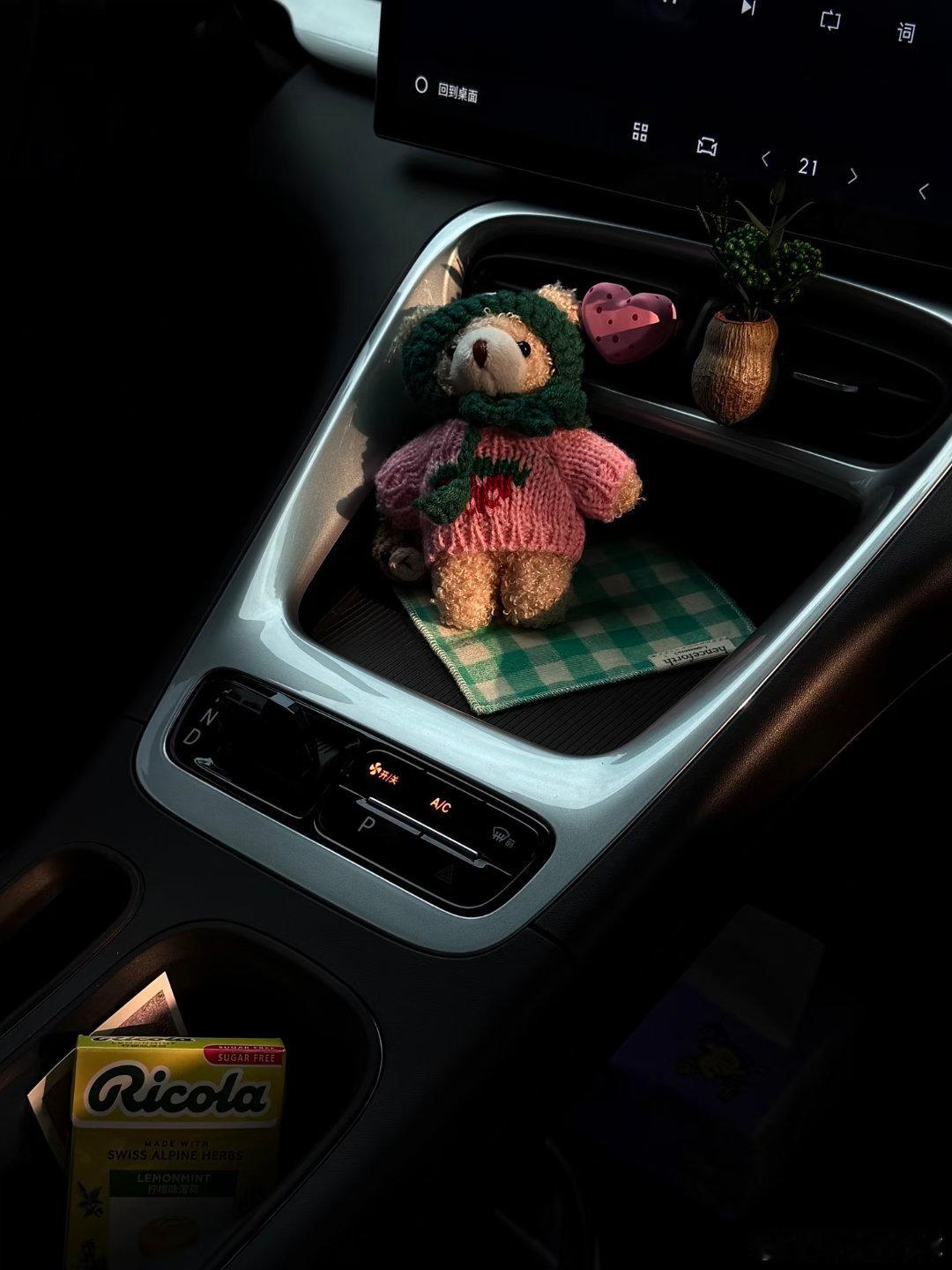 坐进车里先是被喜欢的香氛裹住,副驾放着没看完的书,化妆镜的灯光柔乎乎的,照得肤色都透亮,哪怕早起赶车也能慢悠悠补个妆。最惊喜的是内饰终于告别老气,ins风高级感拉满,我新入的针织方向盘套和绒布挂件一搭,简直是移动的小治愈空间~