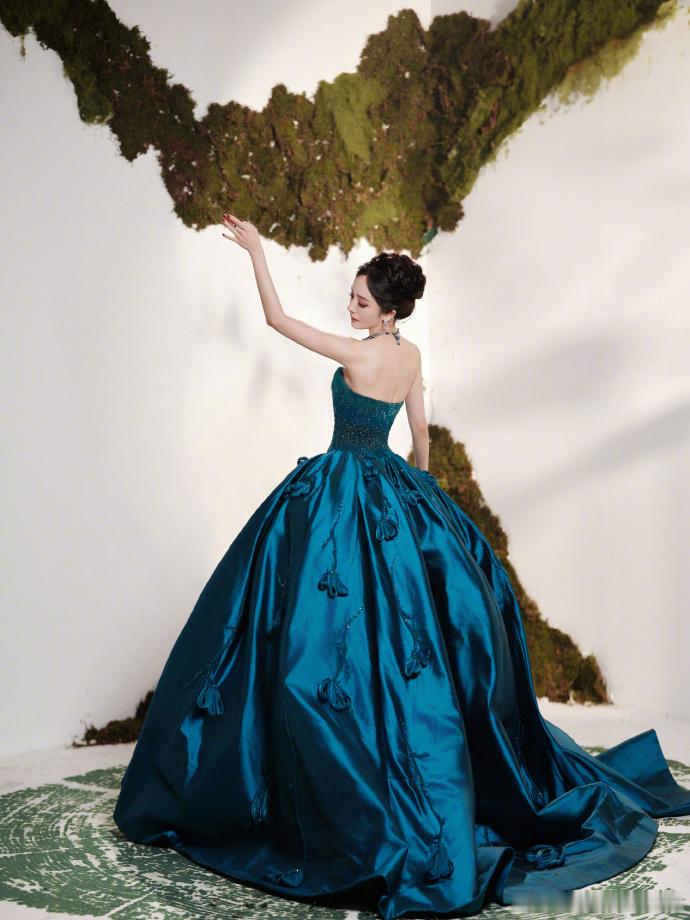 杨幂蓝裙盘发造型,杨幂穿了会生长的裙,是满分生命力的绣绣回来啦,谁能不被这份美貌给惊喜到啊~微博视界大会直播