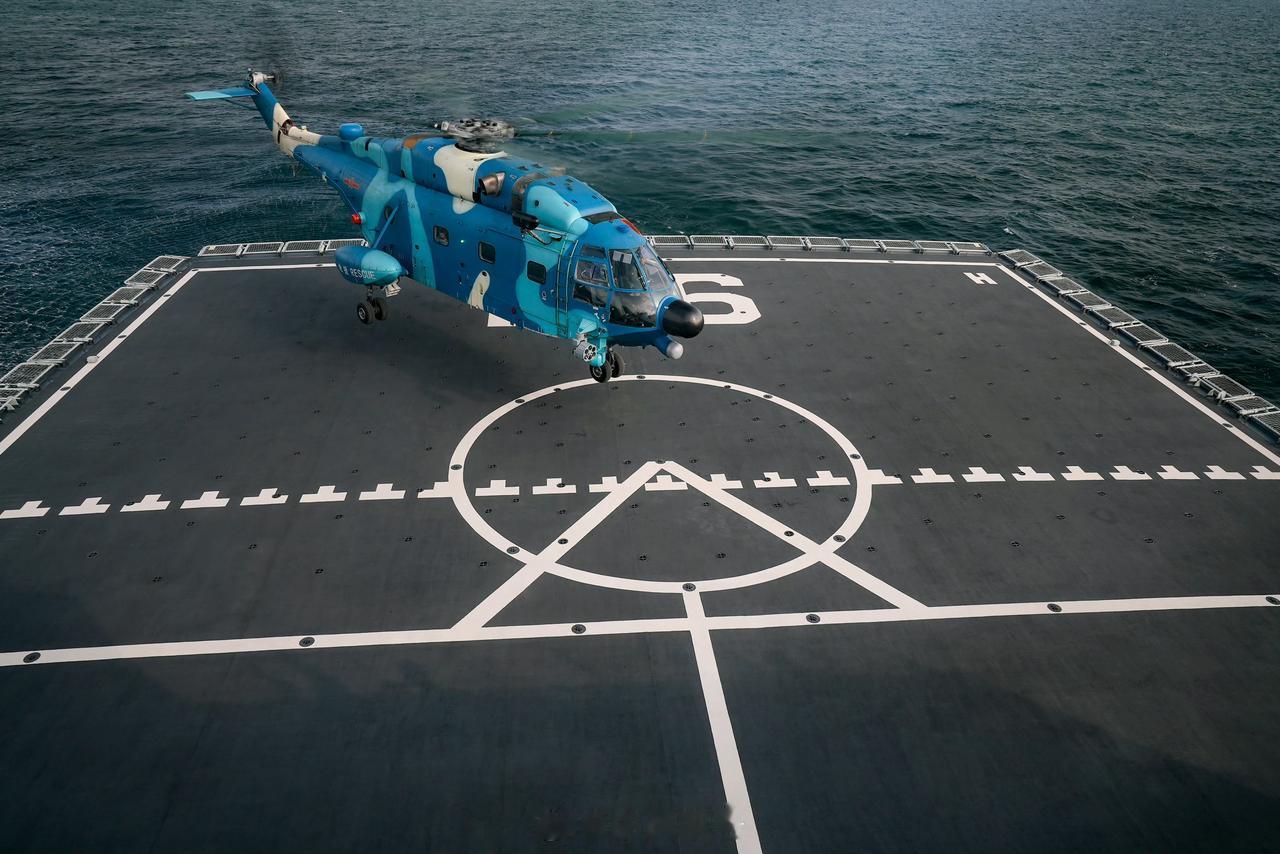 注意看,中国空军运搜直-8K降落“航母奶妈”901呼伦湖舰 直-8K是中国空军专用中型搜索救援直升机,源于直-8系列改进,原型为法国超黄蜂直升机,2005年首批列装空军搜救部队。该机采用3台PT6B-67A涡轴发动机,可选装防沙石装置,高原性能突出,相关衍生型曾创下9000米升限纪录。机身呈船形水密结构,机长20.27米,最大起飞重量13吨,最大航程830公里、速度315千米/小时。 核心搜救配置包括光电吊舱、探照灯、272公斤级电动绞车(钢索长91米),可昼夜在复杂气象下执行陆、海、山区救援。机舱灵活适配,能载39名乘员或15副担架,兼具物资运输与医疗后送能力,2008年汶川地震中发挥关键救援作用,是空军搜救体系的核心装备。