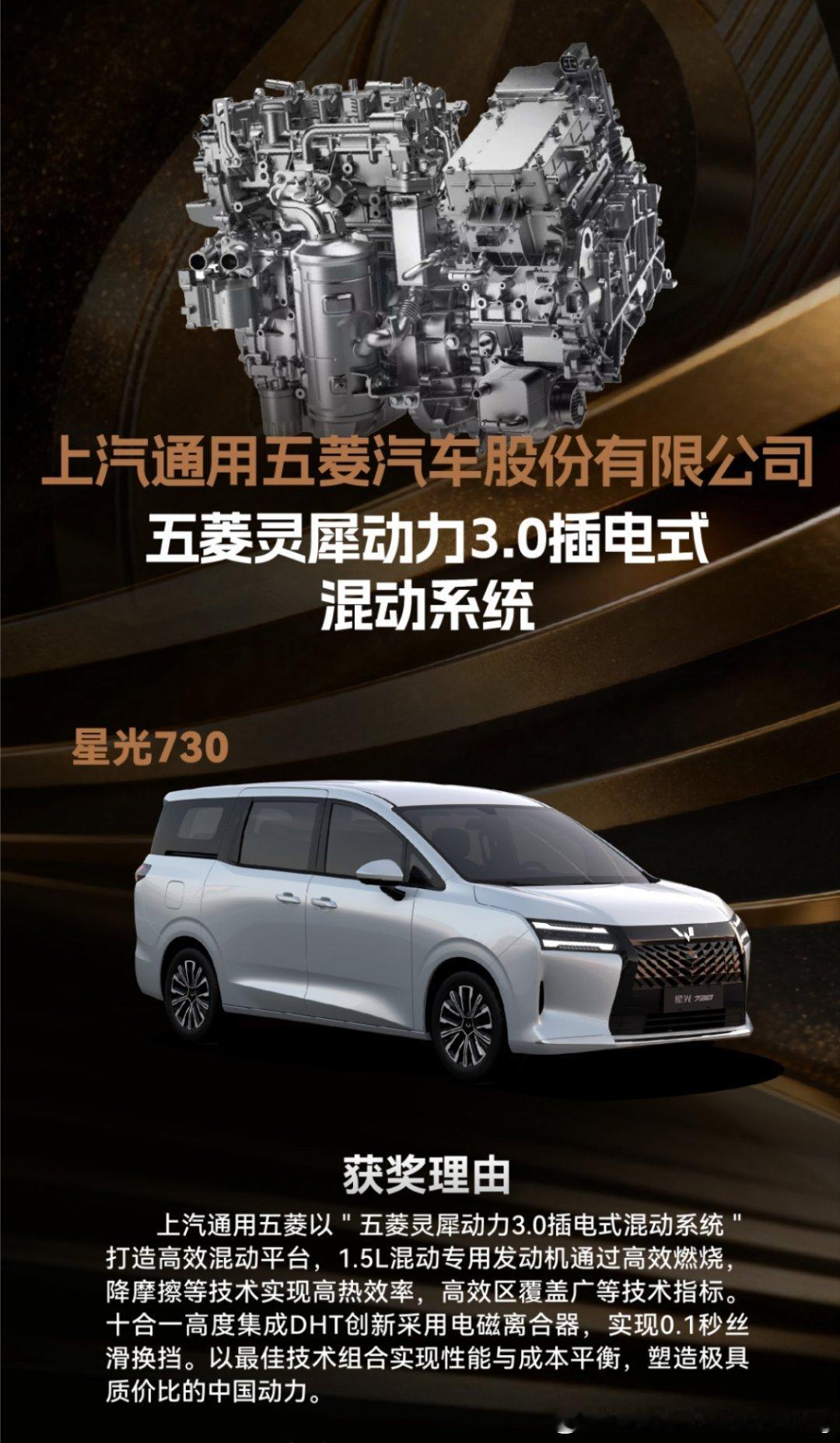 上汽通用五菱星光730首搭灵犀动力3.0,一出手就斩获俩国内动力技术领域顶尖大奖——“2025年度中国心十佳发动机及混动系统”和“中汽中心高品质混动认证”。这灵犀动力3.0油耗低至5.3L/100km(MPV车型),动力强劲还开得顺,历经超100万公里严苛测试和极限验证。星光730预售订单破1.5万台,11月正式上市,蹲一个!星光730入选中国心十佳动力系统