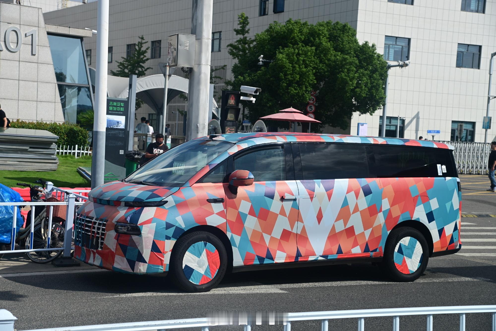 今天吉利一台全新MPV的伪装谍车被拍到了,网传是杭州湾“埃尔法”