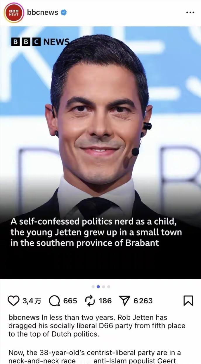 开放的荷兰要换首相了,这次可能会上来一个小“嫂子” 对,这几天,荷兰的大选即将尘埃落定,罗布·耶滕领导领导的左翼政党六六民主党,在计票过程中最后阶段突然反超维尔德斯领导的自由党,路透社预计罗布·耶滕将成为荷兰新一任首相。 这位新首相,他还是“她”,不好说哈,他已经订婚了,他的老公是阿根廷曲棍球运动员Nicolas Keenan,出生于1997年,比耶滕小十岁。 不得不说,欧洲人真会玩,荷兰人真会玩,从商业到身体,从民间到朝堂,真是玩的五花八门、五光十色,叹为观止。 还是注意“节制”啊,别像安世这么瞎搞,搞出祸事来,让整个荷兰国家去背锅。 我看好这个新的“女”首相,不知道他如果来访问东方,该怎么安排他的丈夫呢?