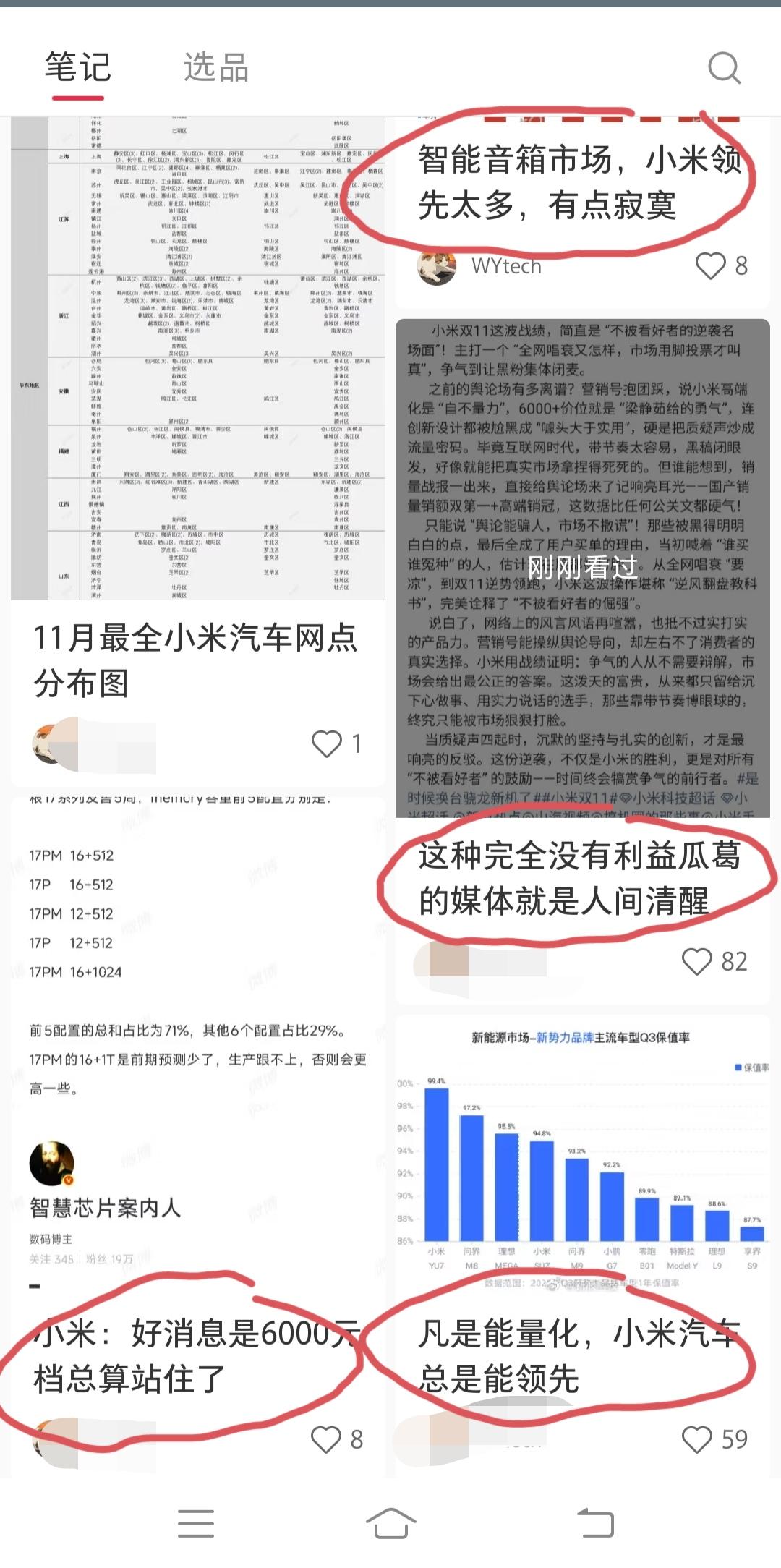 某书上的一个账号,粉丝3000+,主页里面说的都是小米的事情,就是截取各大平台上关于小米的文章,当然,截取的都是说小米很优秀的那种文章。比如说: “凡是能量化的,小米汽车总是能领先”。 “不出所料,小米汽车连续两个月领跑蔚小理”。 “有点夸张,6000+小米手机卖爆了”。 “智能音箱市场,小米领先太多,有点寂寞”。 不知道这样的账号在各大平台有多少,有没有1000+?