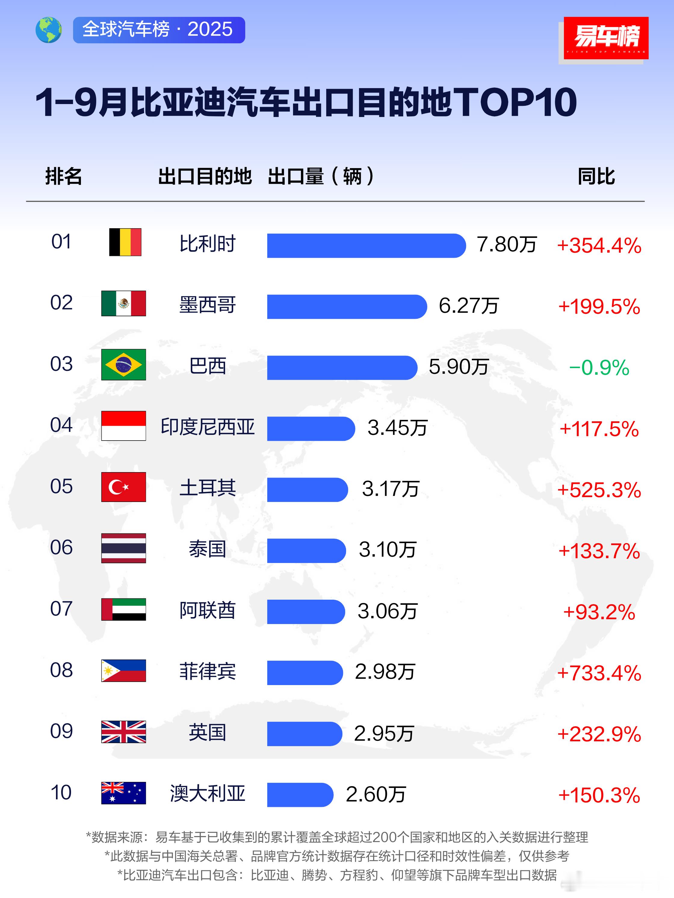 而比亚迪则基本都是增长了,巴西出口下降也是暂时的,因为在那边建厂投产了,都不用出口了。