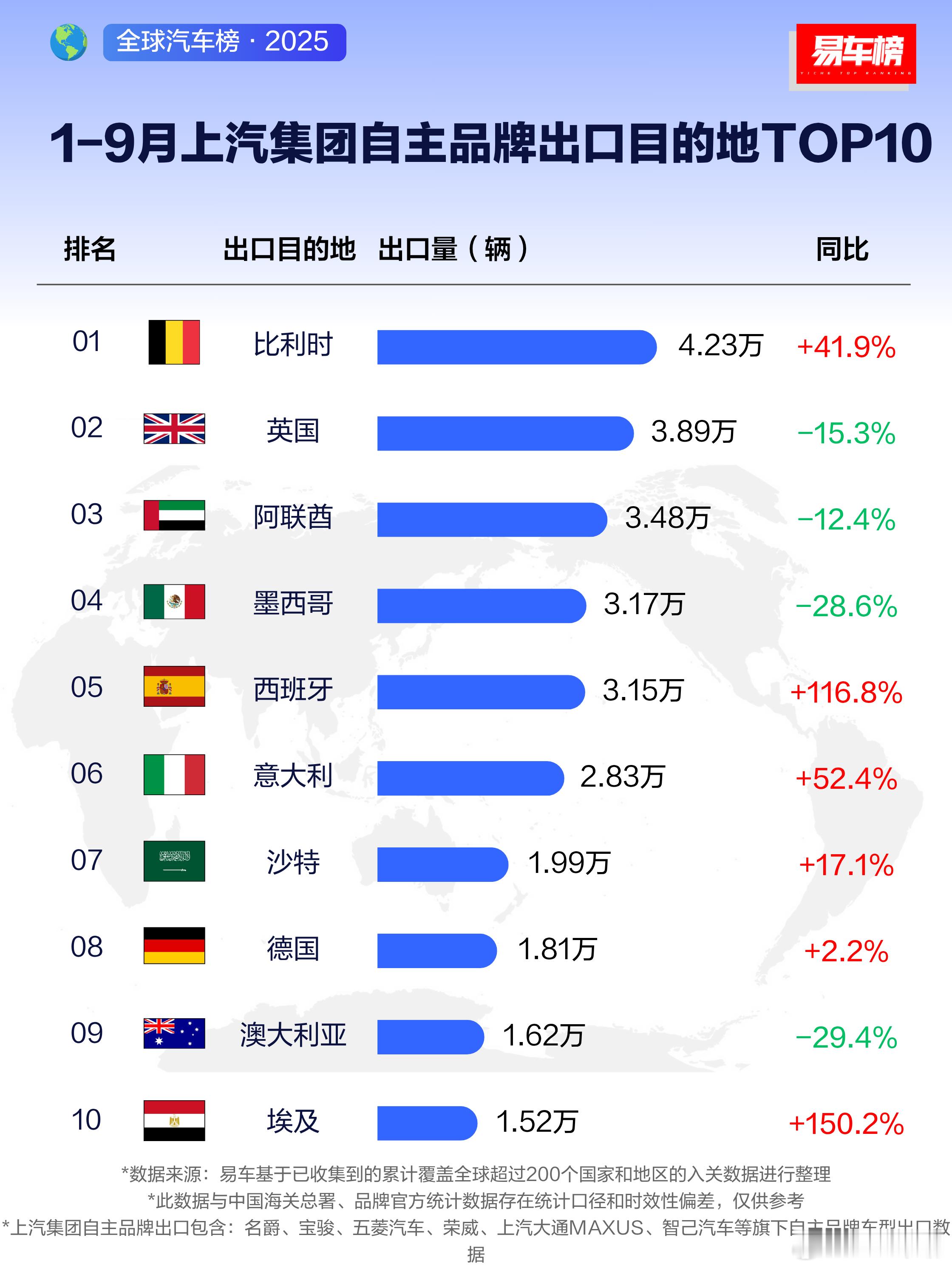 上汽出口下滑的国家,主要是英国/阿联酋/墨西哥/澳大利亚。