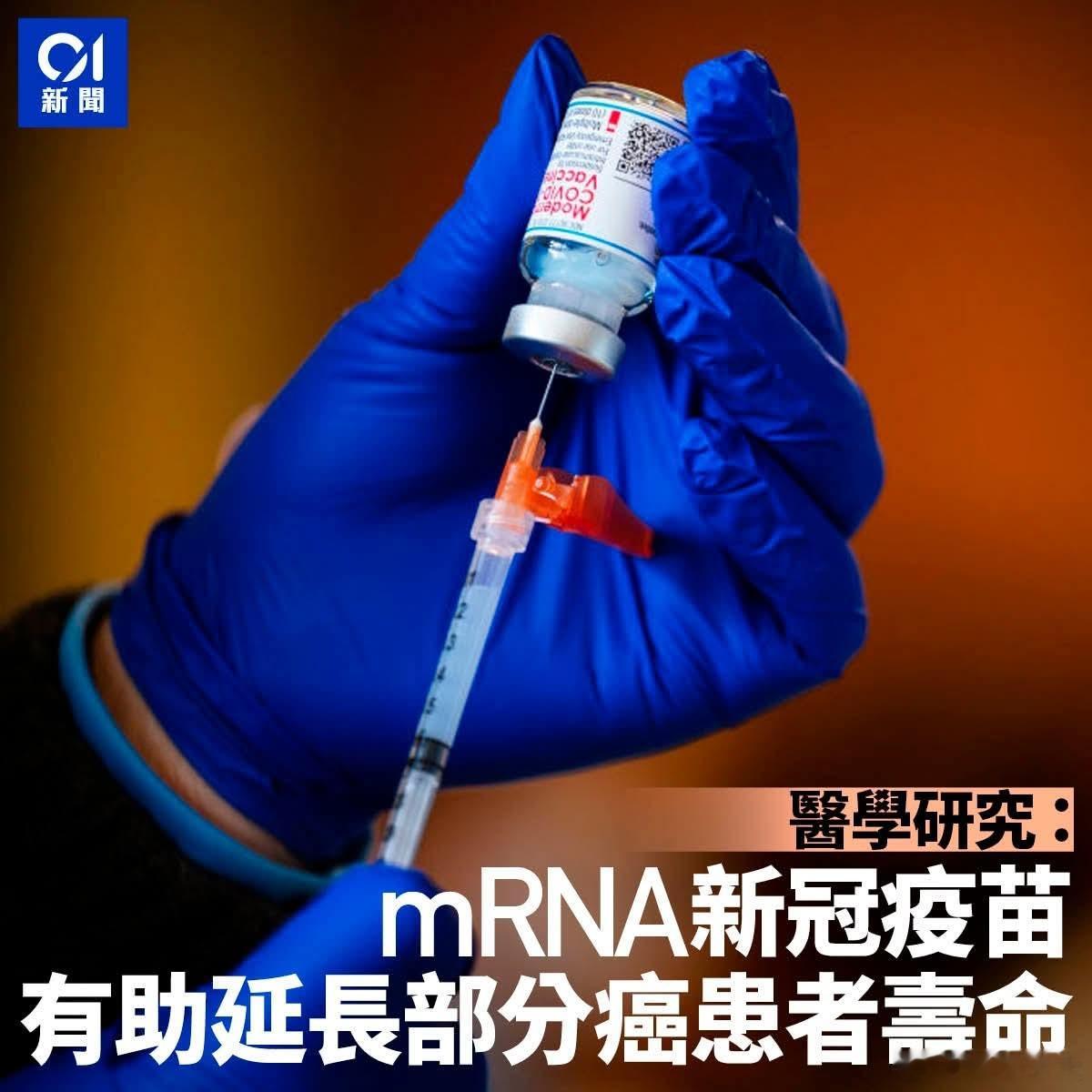 研究指出,mRNA新冠疫苗增强了人体免疫系统,让患者寿命得以延长,而在癌症治疗开始后100天内接种疫苗的人寿命延长的机率更高。