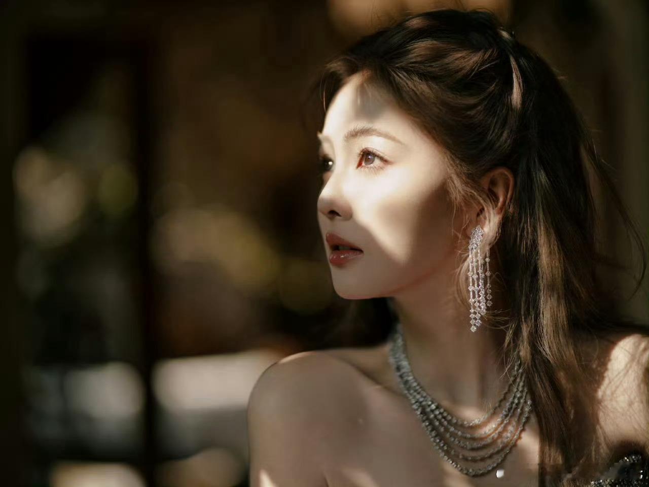 白鹿光之女神,太美了白鹿纯白抹胸高定白鹿美神