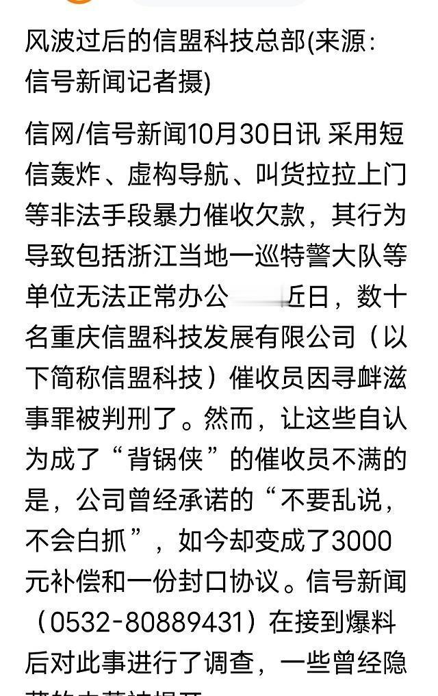 特警队被催收短信炸成短信广场,叫货拉拉搬走办公桌——这催收,催的是人命,不是债。 他们不是疯了,是系统逼的。 底层员工一天打五百通电话,KPI比命重,客户不是人,是数据条。 可你催错人了。 特警不是欠钱的,是保命的。 你拿他们当软柿子捏,结果捏出一锅高压锅。 金融公司把脏活外包,催收公司把人当机器,机器崩了,就炸了。 别再说“欠债还钱天经地义”了。 你逼一个月薪一千七的打工人,和逼一个拿枪站岗的警察,有啥区别? 法律不是纸,是底线。 越线的,别等判刑,先丢饭碗。 催收不是战争,是服务。 服务不好,就该关门,别拿人命当KPI。