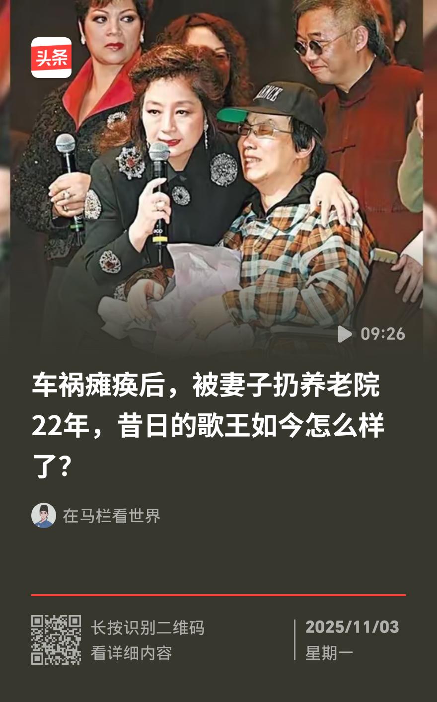 昔日歌王车祸瘫痪被妻送养老院22年,71岁近况曝光,网友:比想象中硬气 昔日香港歌王瘫痪后被妻子扔养老院 22 年,如今 71 岁的他竟还在轮椅上搞创作?这剧情比电视剧还抓马! 蔡国权当年可是乐坛狠角色,《蔡国权年代经典 蔡国权歌曲重唱