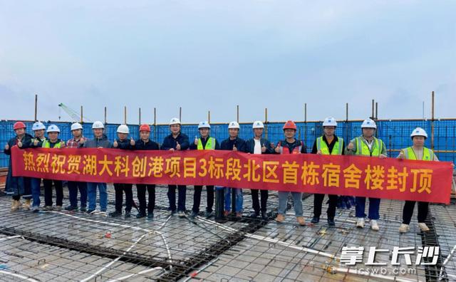 长沙晚报掌上长沙11月3日讯(全媒体记者王珂通讯员康佳)11月3日,随着最后一方混凝土浇筑完成,由中建五局三公司承建的湖南大学科创港校区建设项目(三标段)宿舍北区迎来关键节点——27#栋率先实现主体结构封顶,标志着工程建设取得阶段性成果,为后续施工的快速推进奠定了坚实基础。