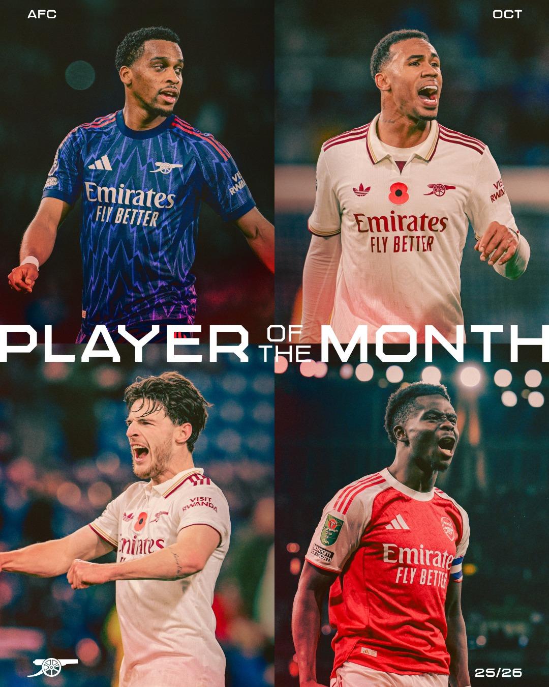 虎扑11月03日讯阿森纳官方公布10月份队内最佳球员候选名单: